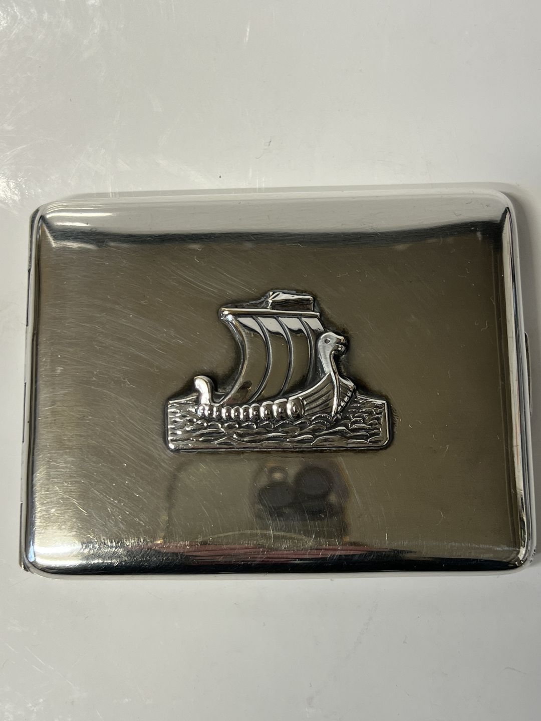 Cigaret etui / Kort etui Sølvplet motiv skib