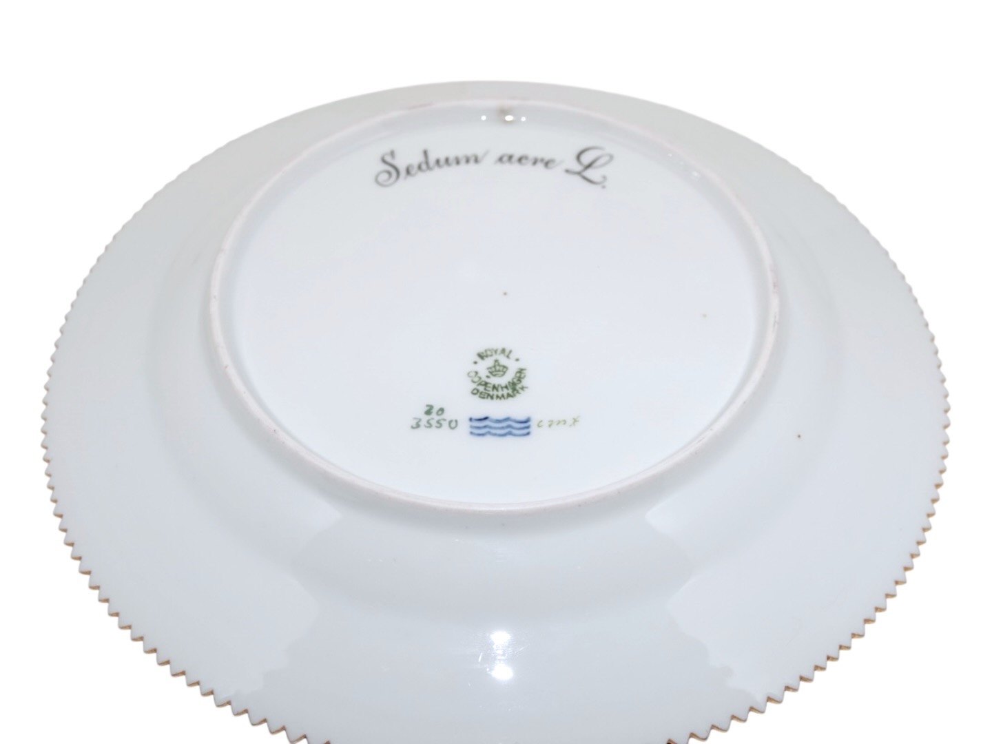 Dekoreret med blomst "Sedum acre L.", som er "Bidende Stenurt" på dansk.