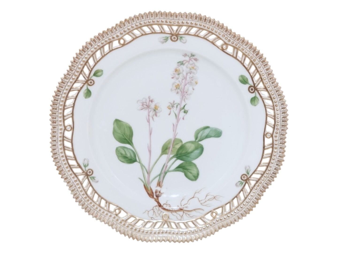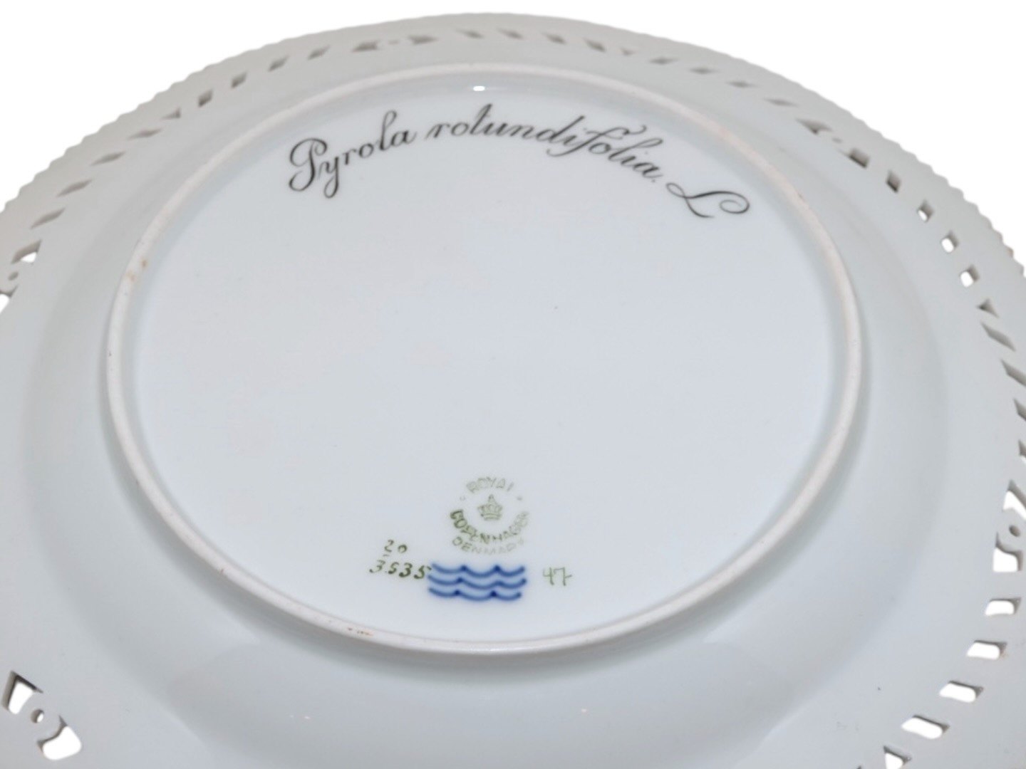 Beskrivelse: Royal Copenhagen Flora Danica, middagstallerken / underfad til frugtskål med gennembrudt kant.
