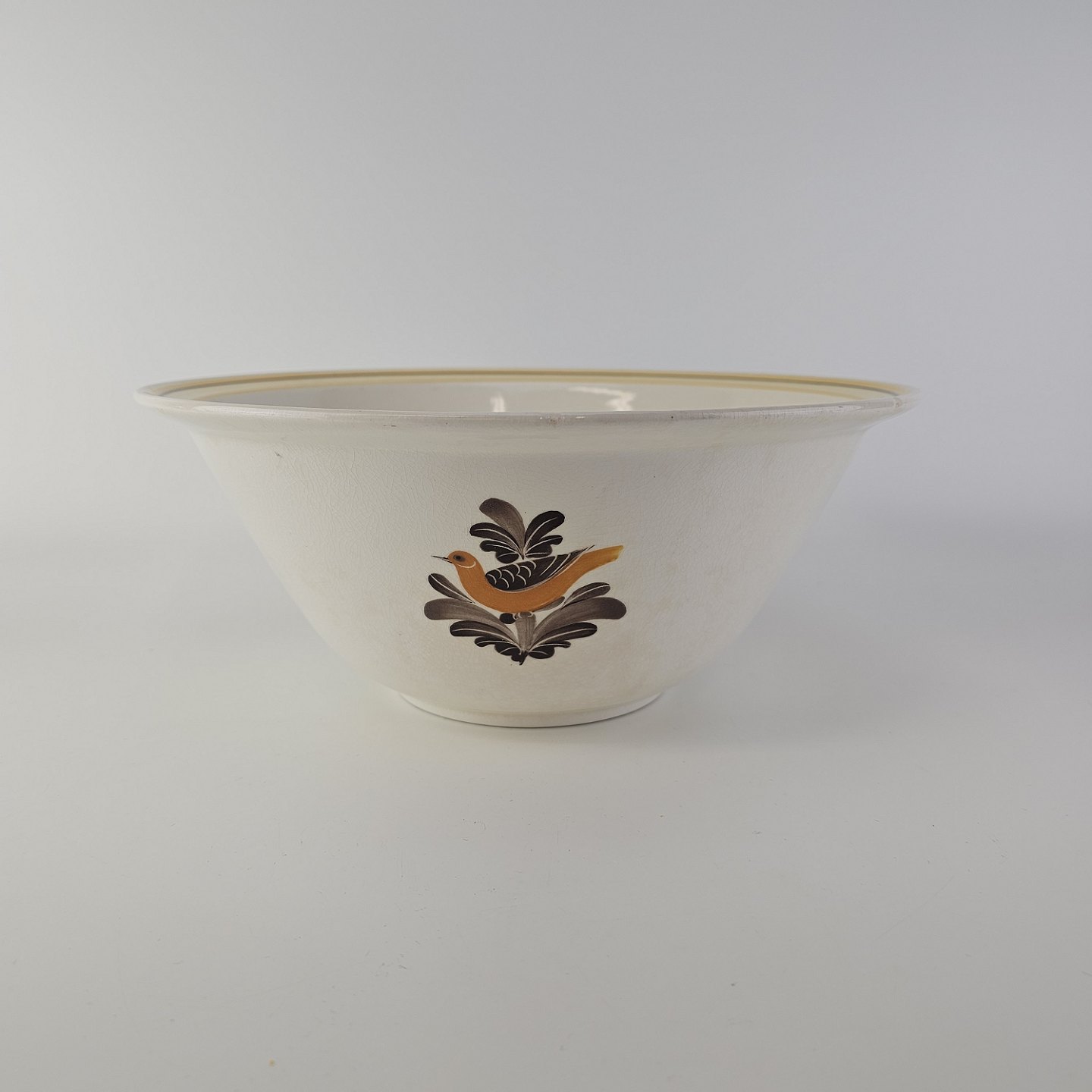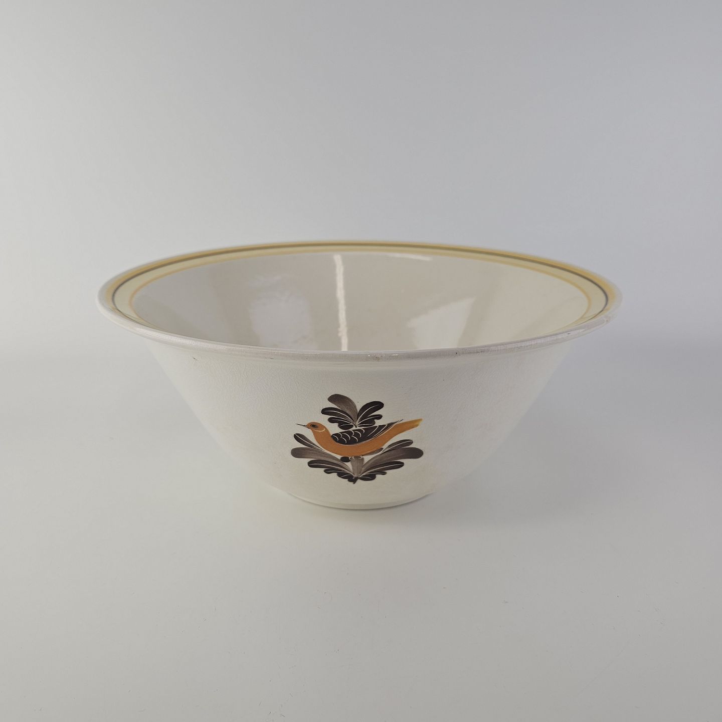 Beskrivelse: Skål i fajance fra stellet Margrethe fremstillet i perioden 1937-1940.