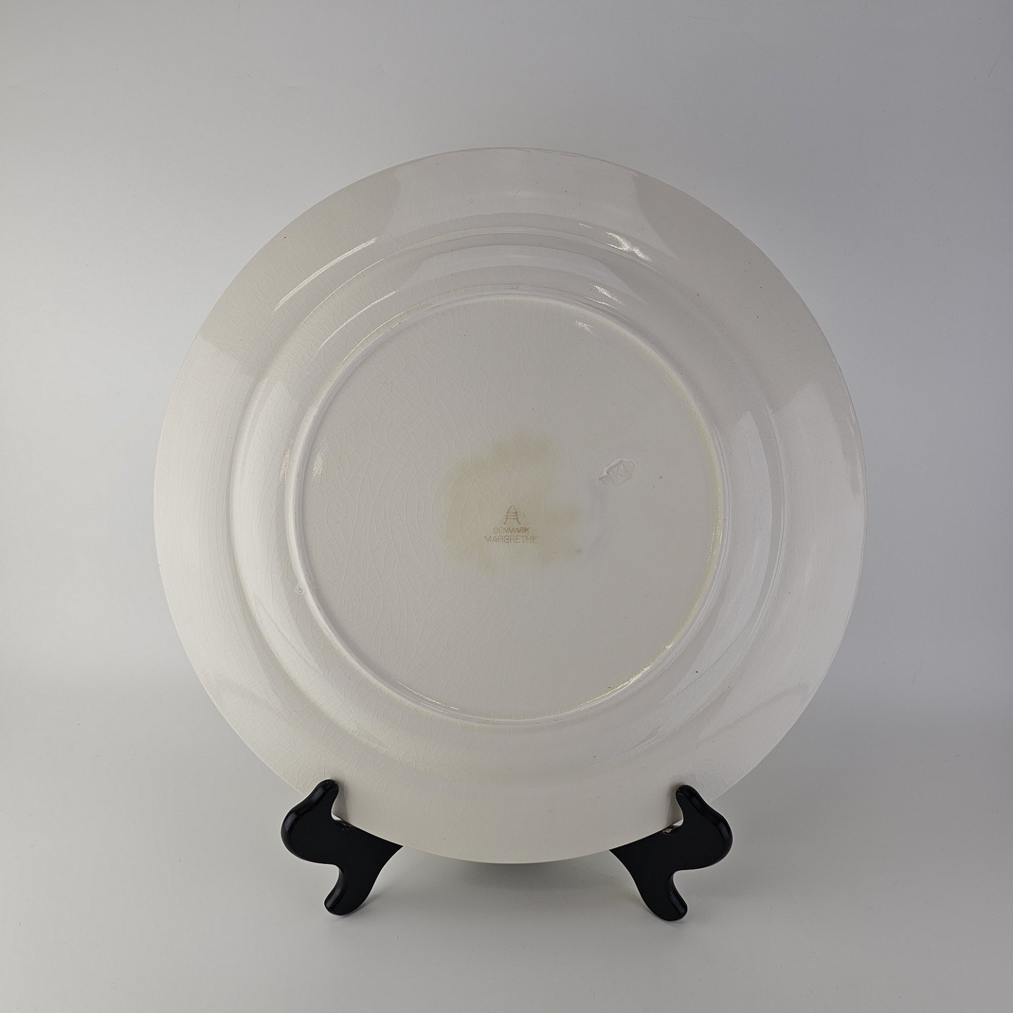 Beskrivelse: Rundt fad i fajance fra stellet Margrethe fremstillet i perioden 1937-1940.