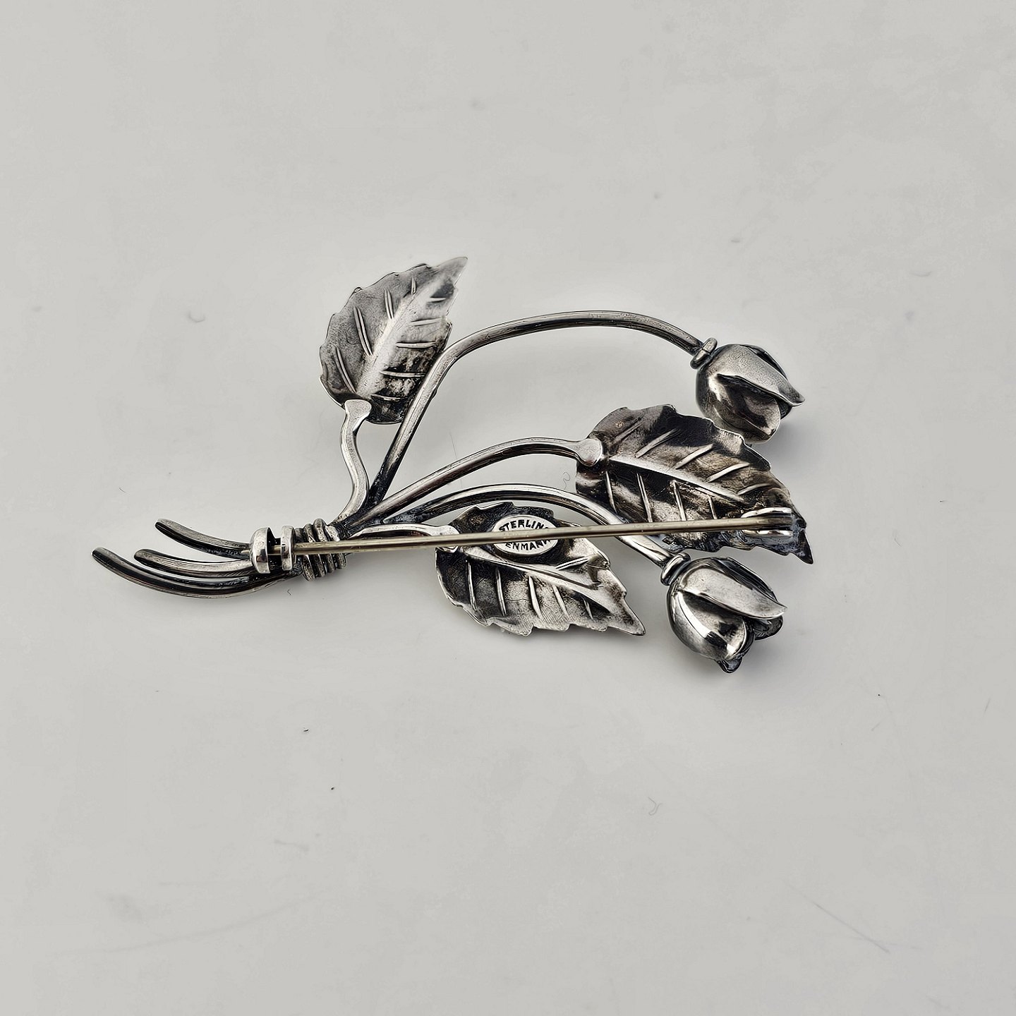 Beskrivelse: Broche i sterling sølv med motiv af en lille blomsterbuket