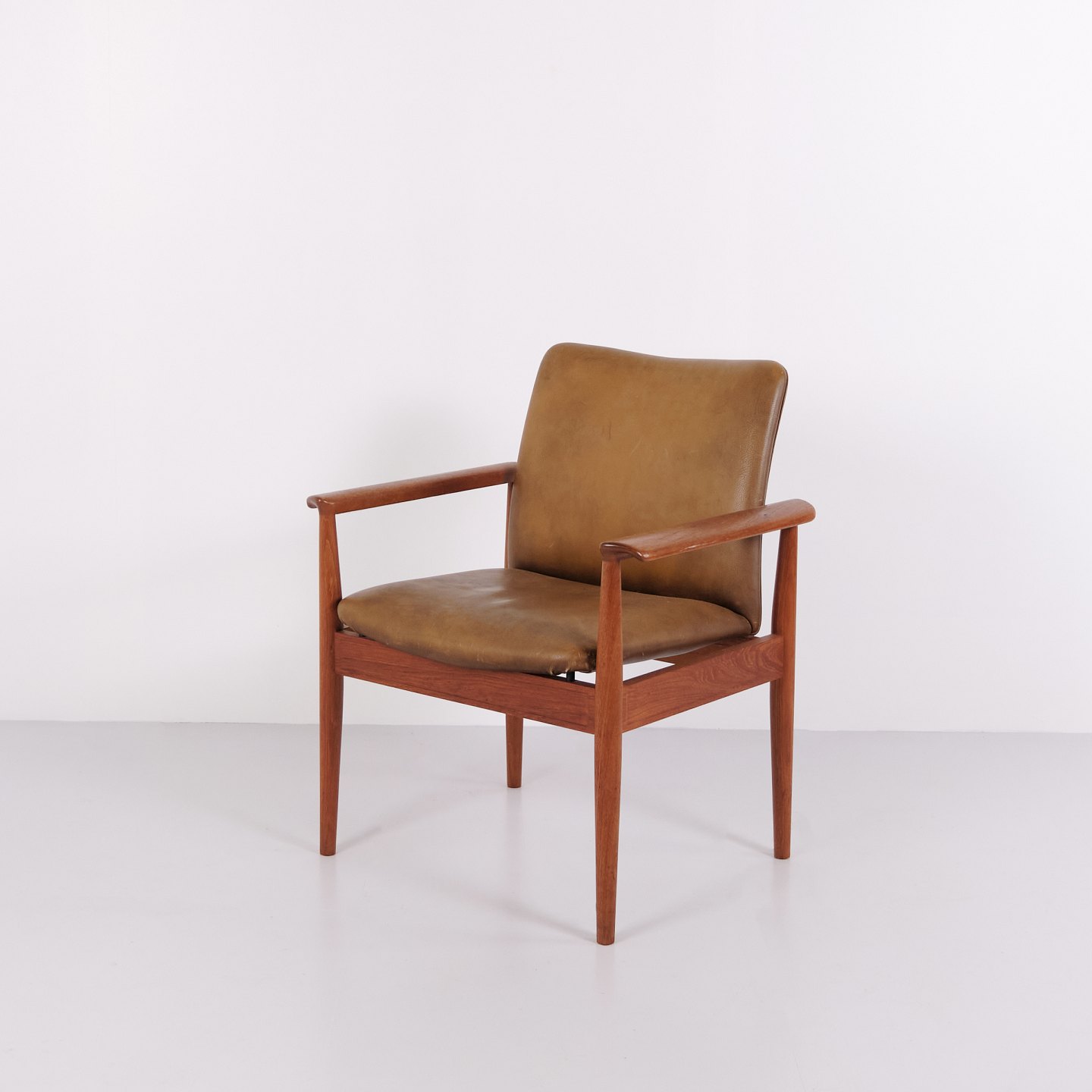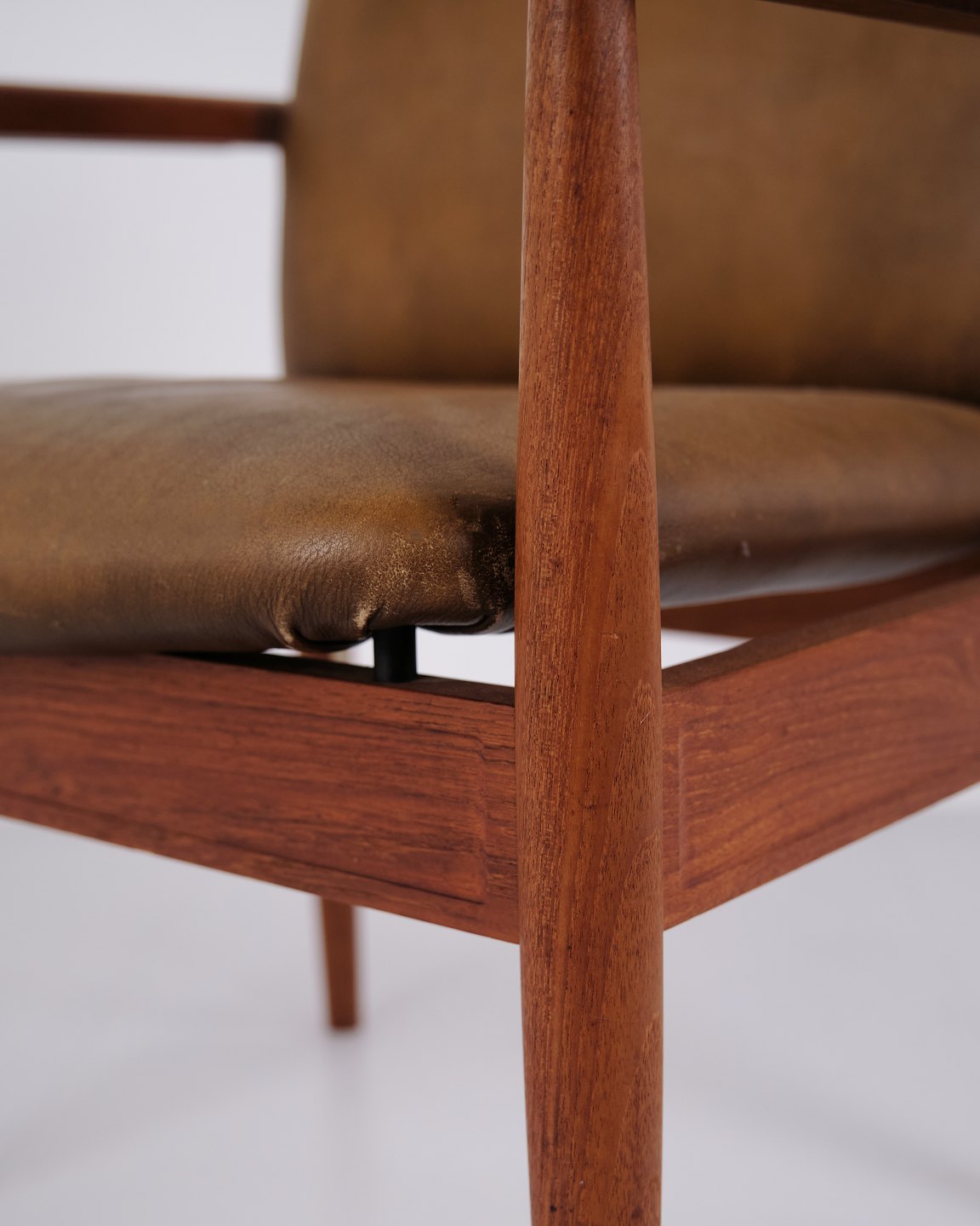 Finn Juhl Diplomat Armstol i Teak og Patineret Læder for France & Søn, 1960erne