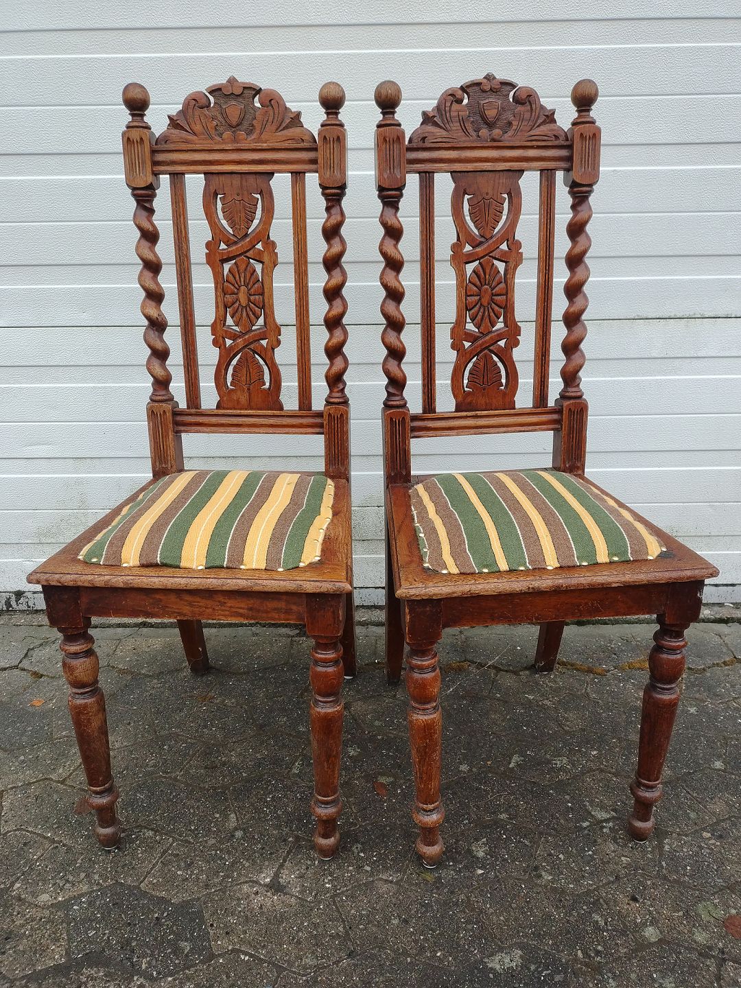 : 2 Stole i bejdset massivt egetræ, fra 1920erne.