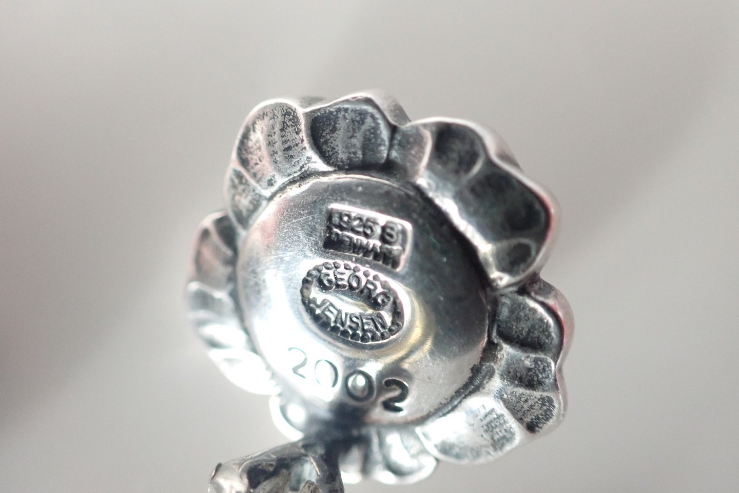 Georg Jensen - blomsterøreklips i sterling sølv med granater.