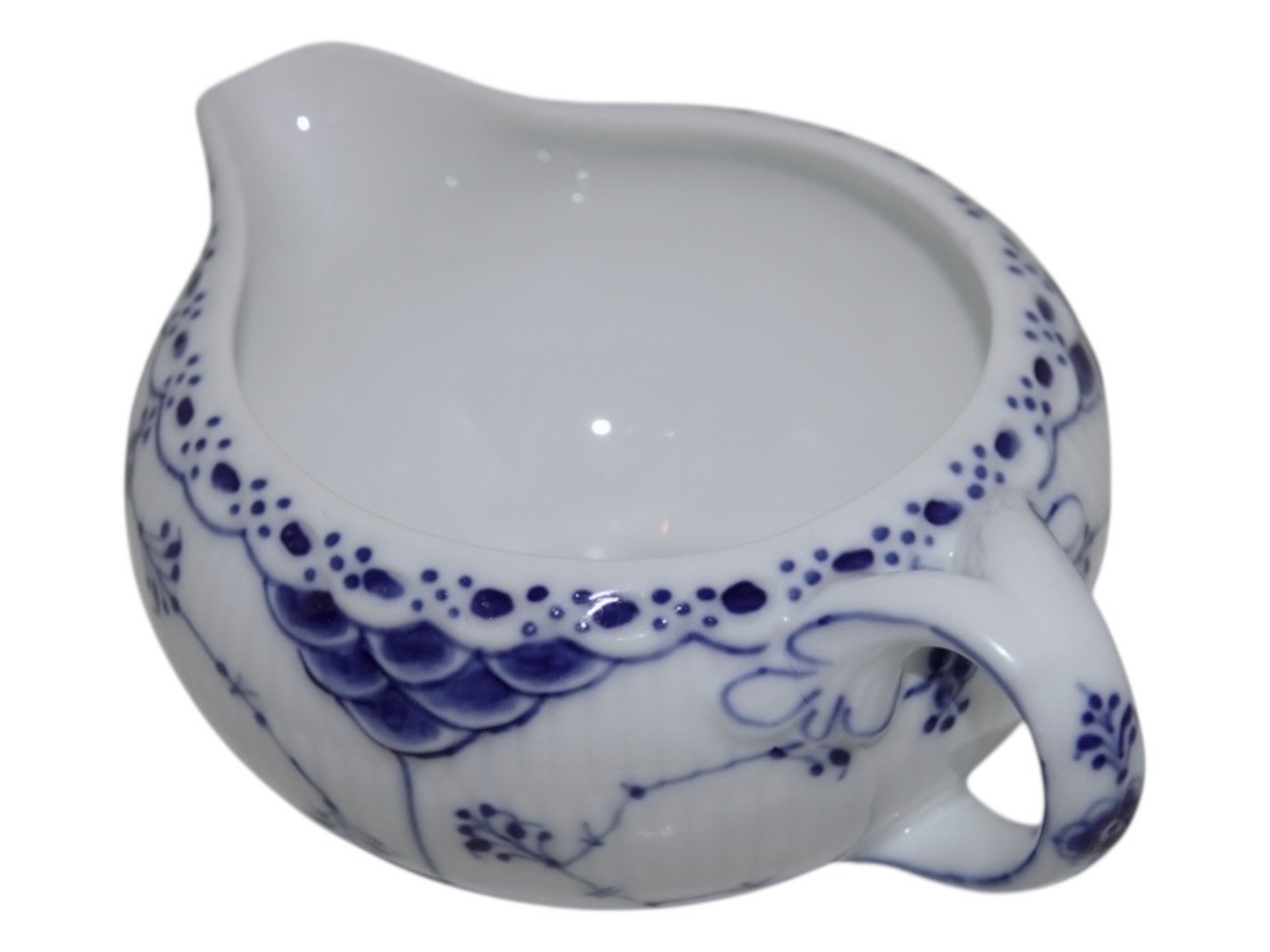 Beskrivelse: Royal Copenhagen Musselmalet Halvblonde, sjælden flødekande.