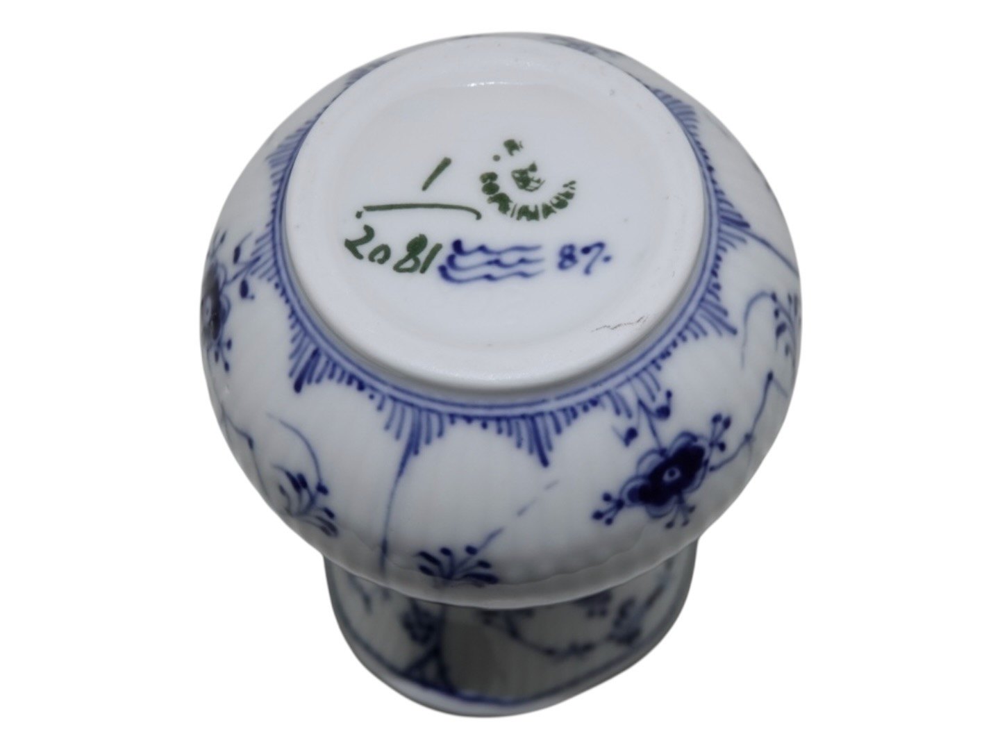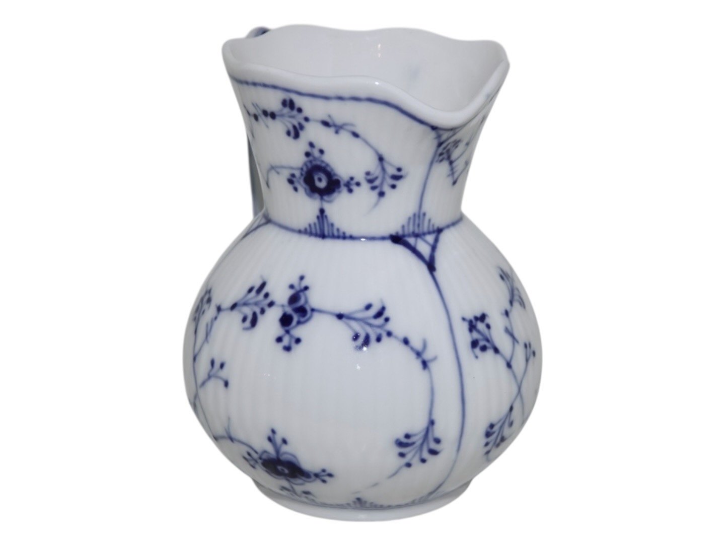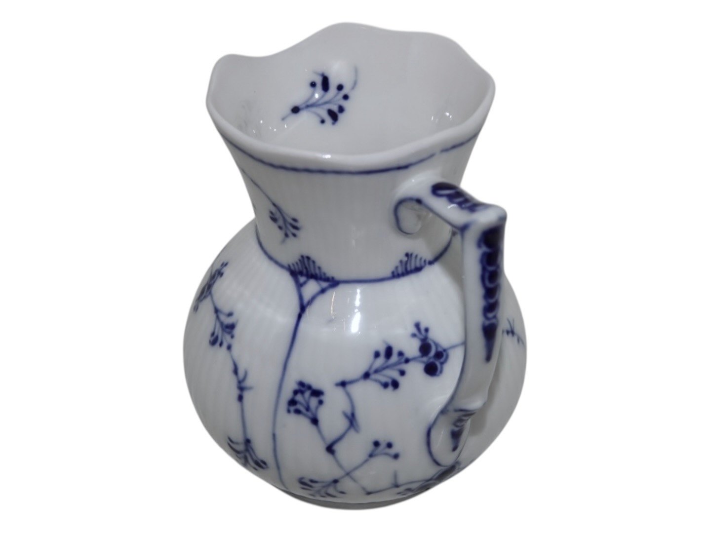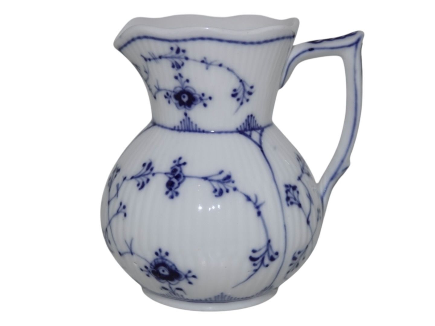 Beskrivelse: Royal Copenhagen Musselmalet Riflet, sjælden flødekande.
