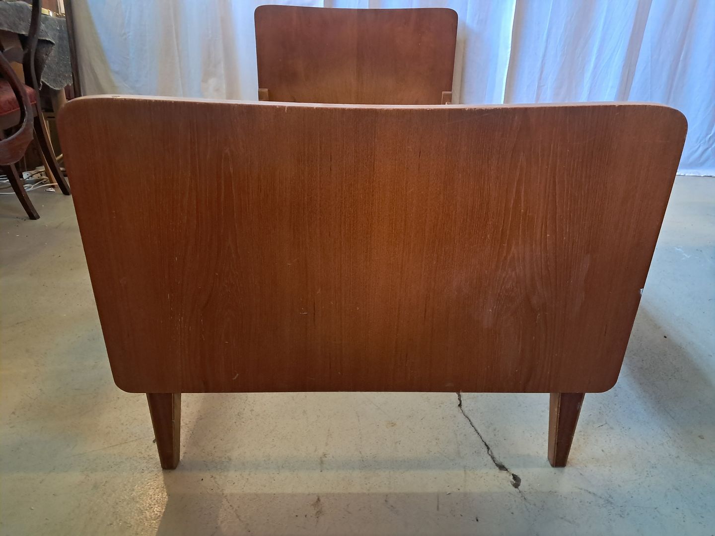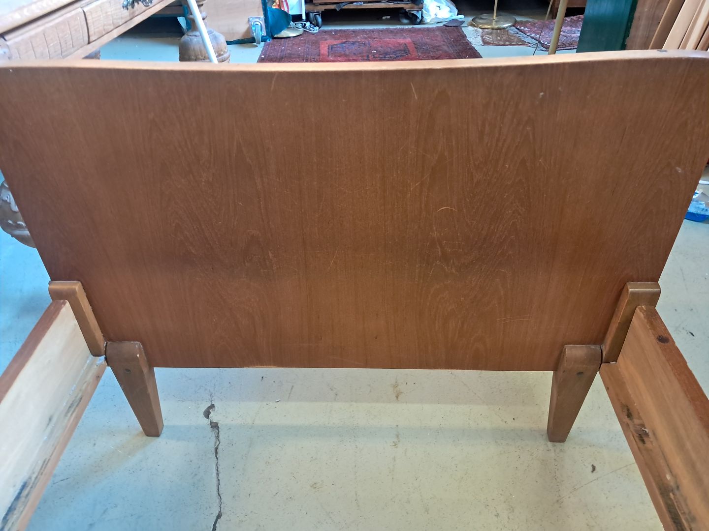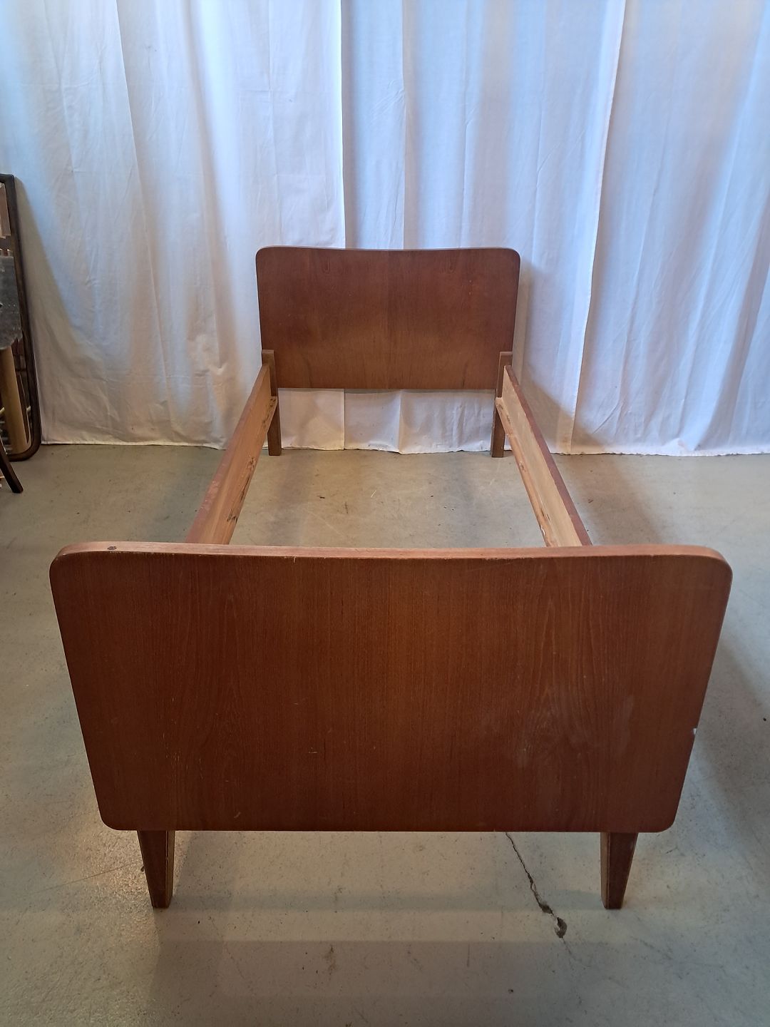 Beskrivelse: Seng i fineret teaktræ, fra 1960erne.