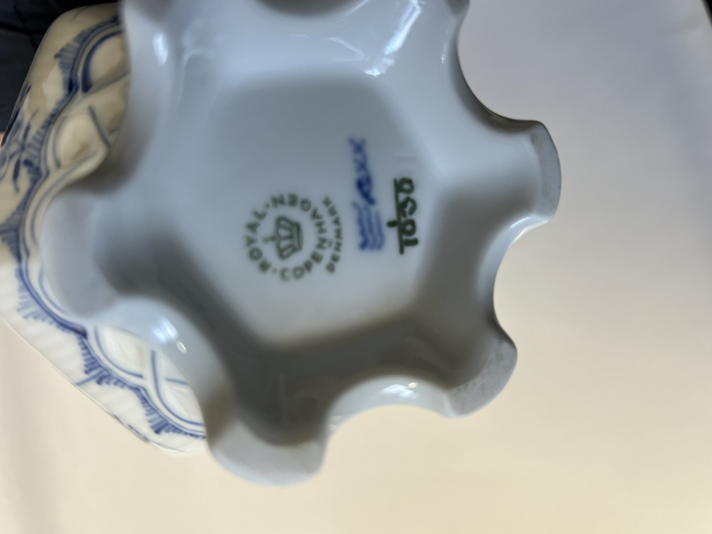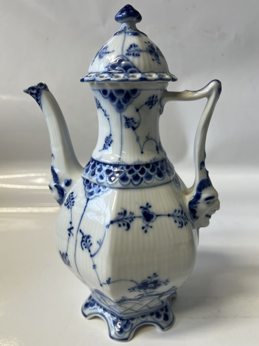 Beskrivelse: Royal Copenhagen Musselmalet Helblonde, lille kaffekande.