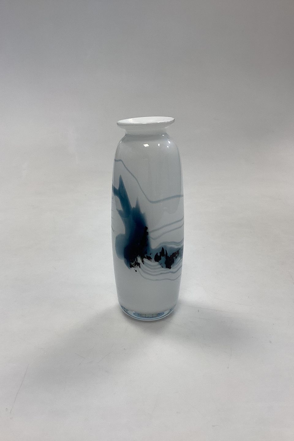 : Holmegaard Atlantis Vase. Hvid med blå dekoration. Designet af Michael Bang.