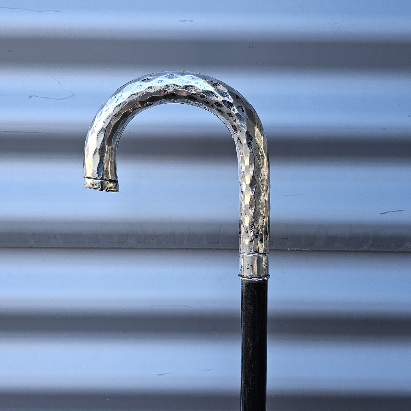 Beskrivelse: Stok i træ med buet håndtag i sølv, 830S