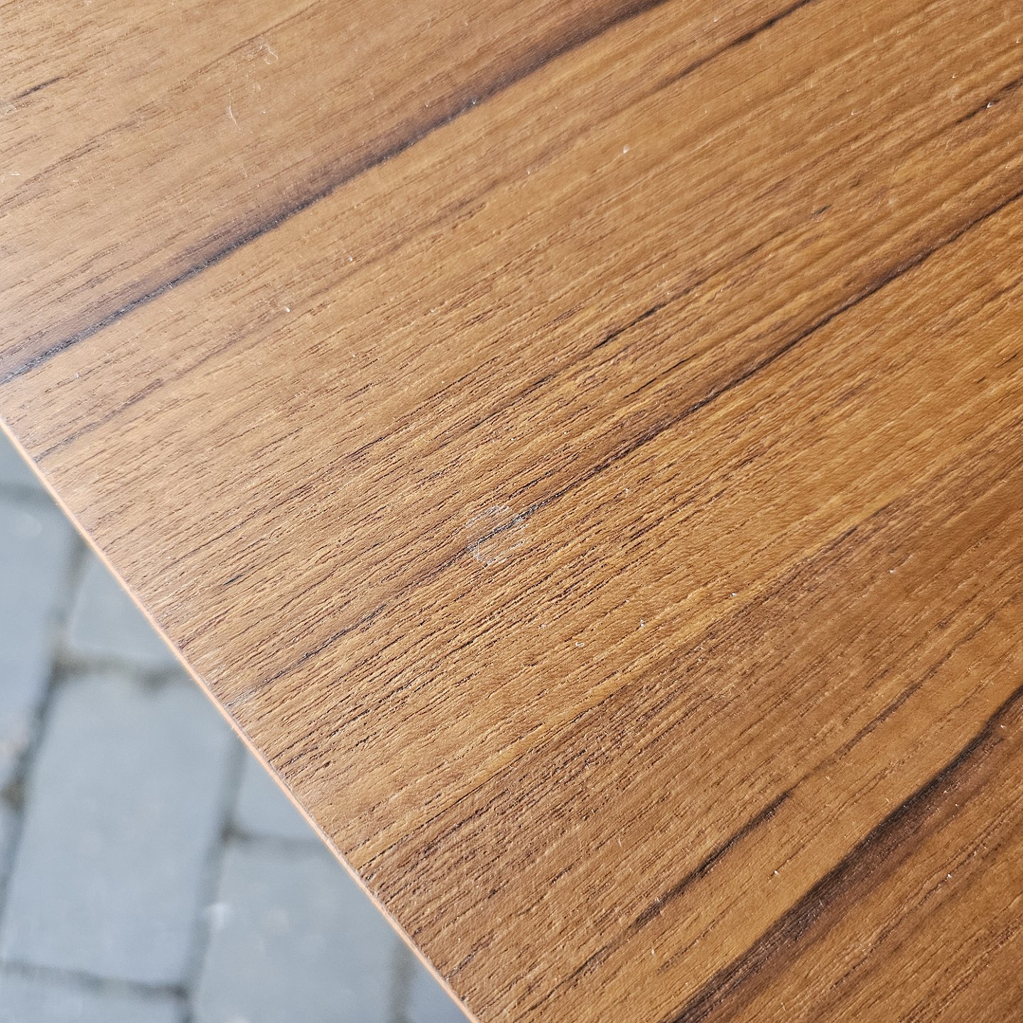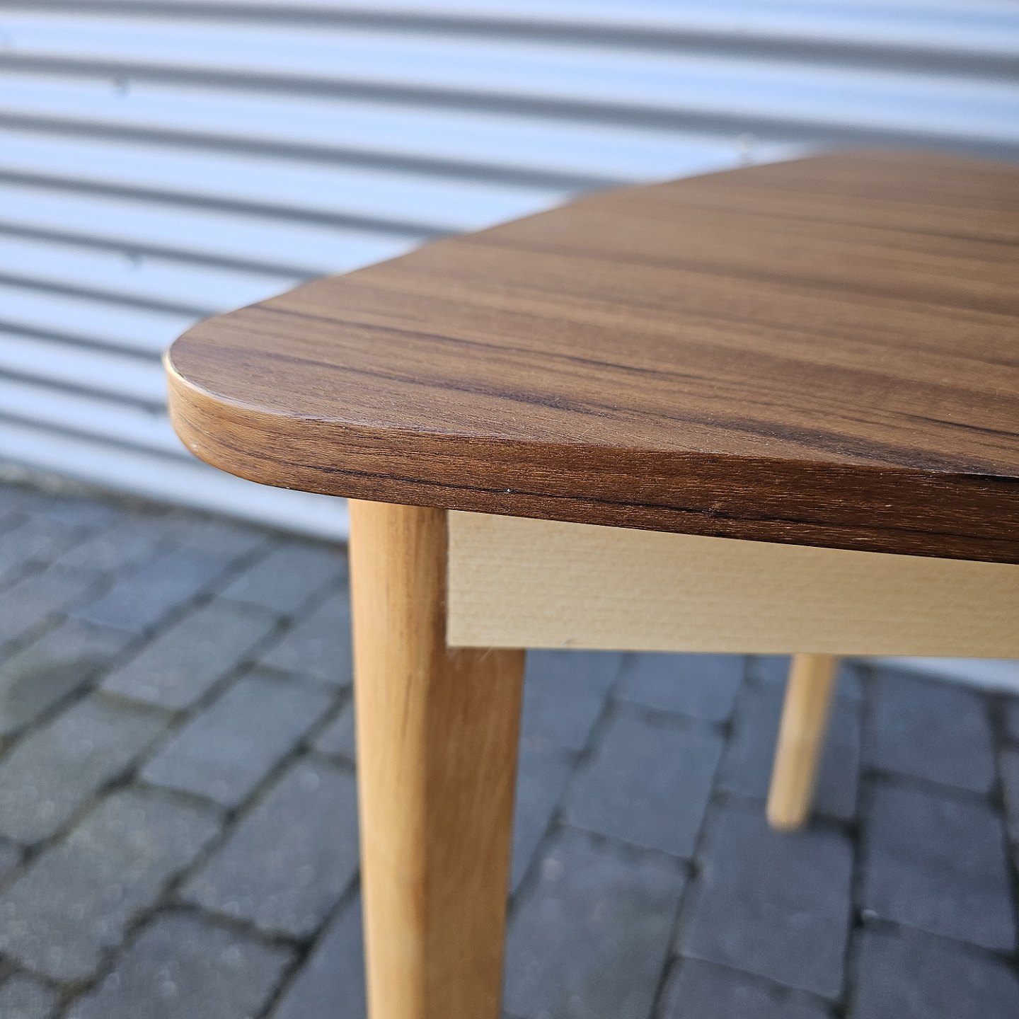 Fremstår med brugsspor på stellet og rester af maling på undersiden af bordpladen