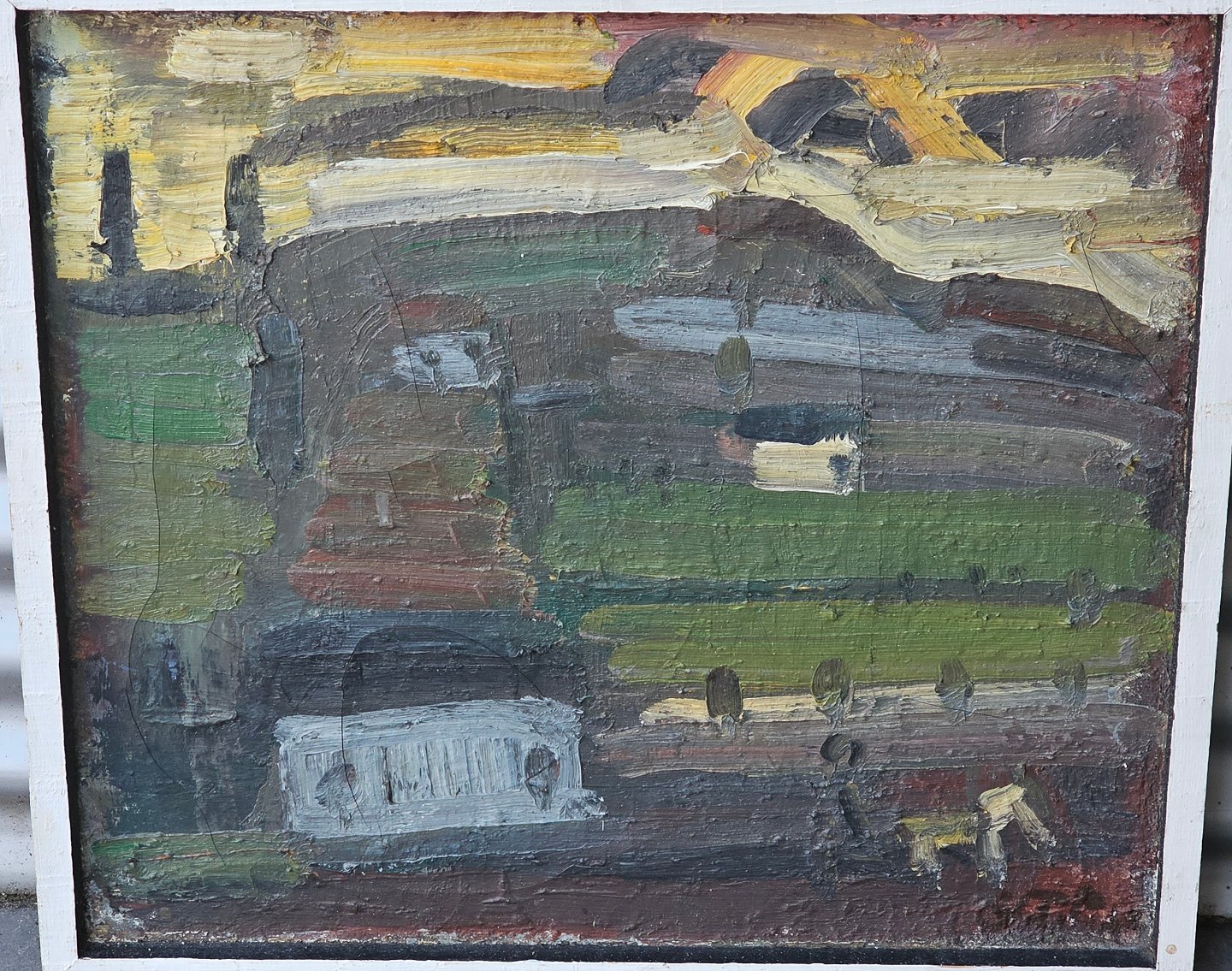 Beskrivelse: Oliemaleri på lærred med hvid ramme