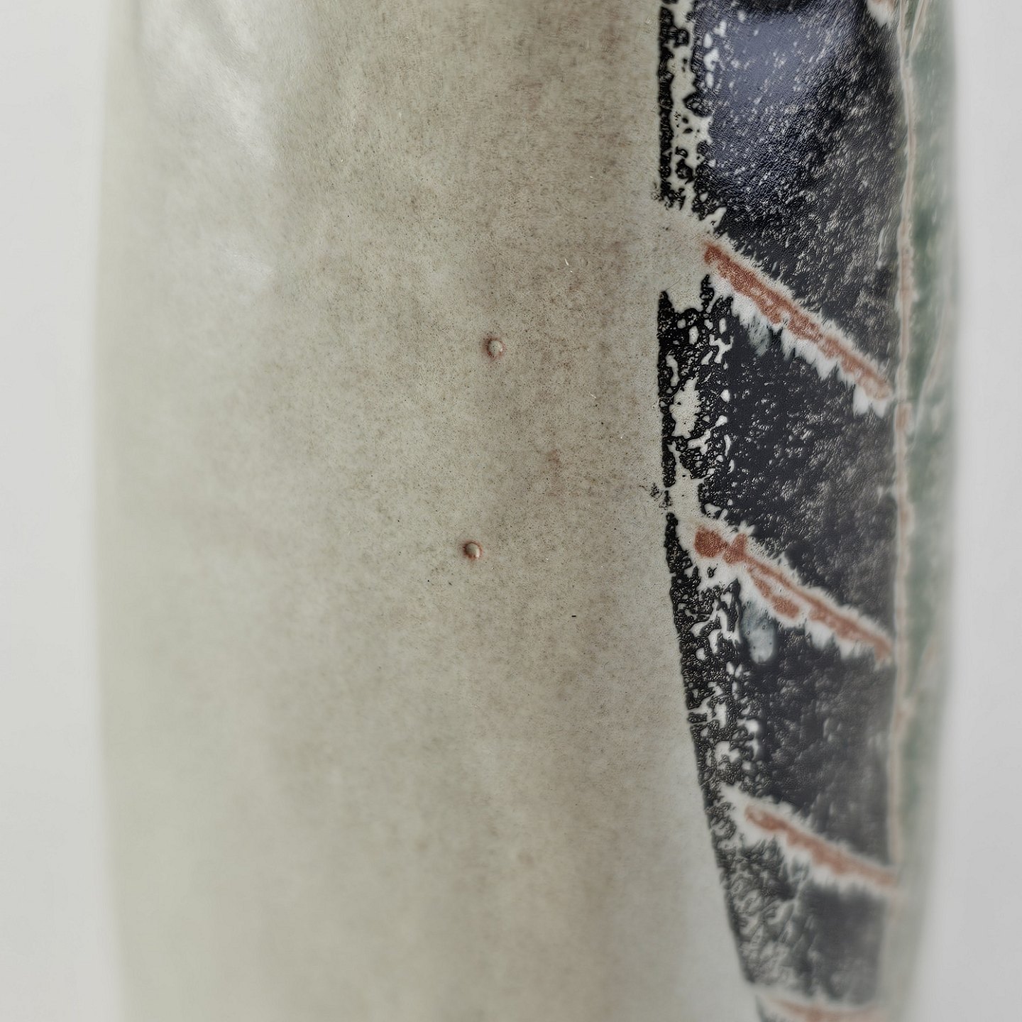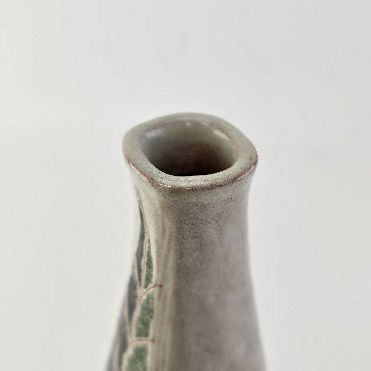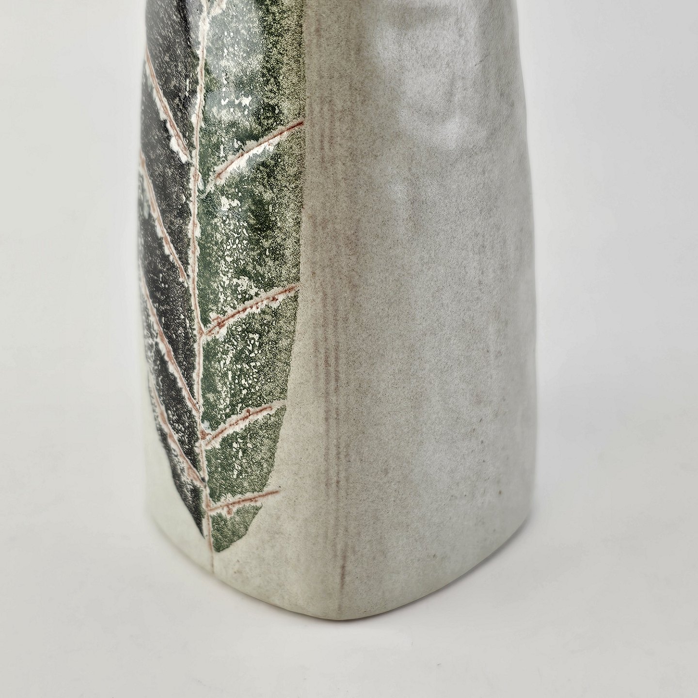Beskrivelse: Firkantet vase i keramik med bladmotiv
