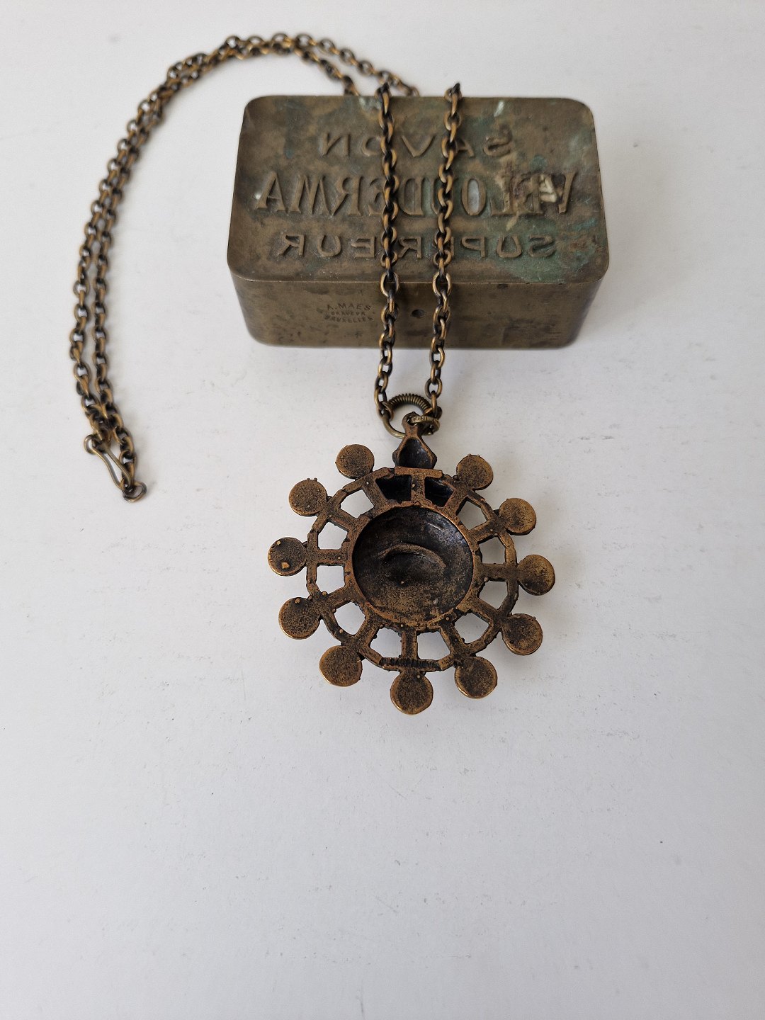 Beskrivelse: Vintage bronze halssmykke, vedhænget er udført som krysantemum