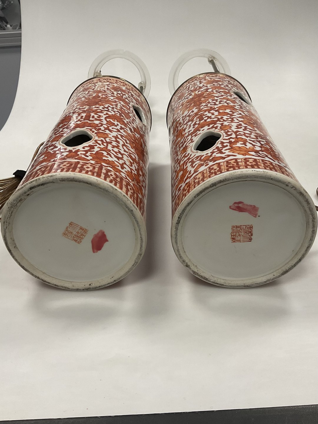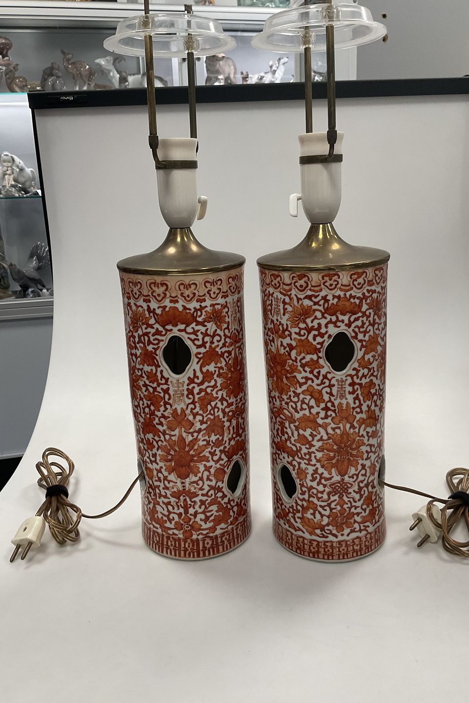 Beskrivelse: Kinesisk Orientalske Par Lamper af Vaser Jern Rød decoration Qianlong