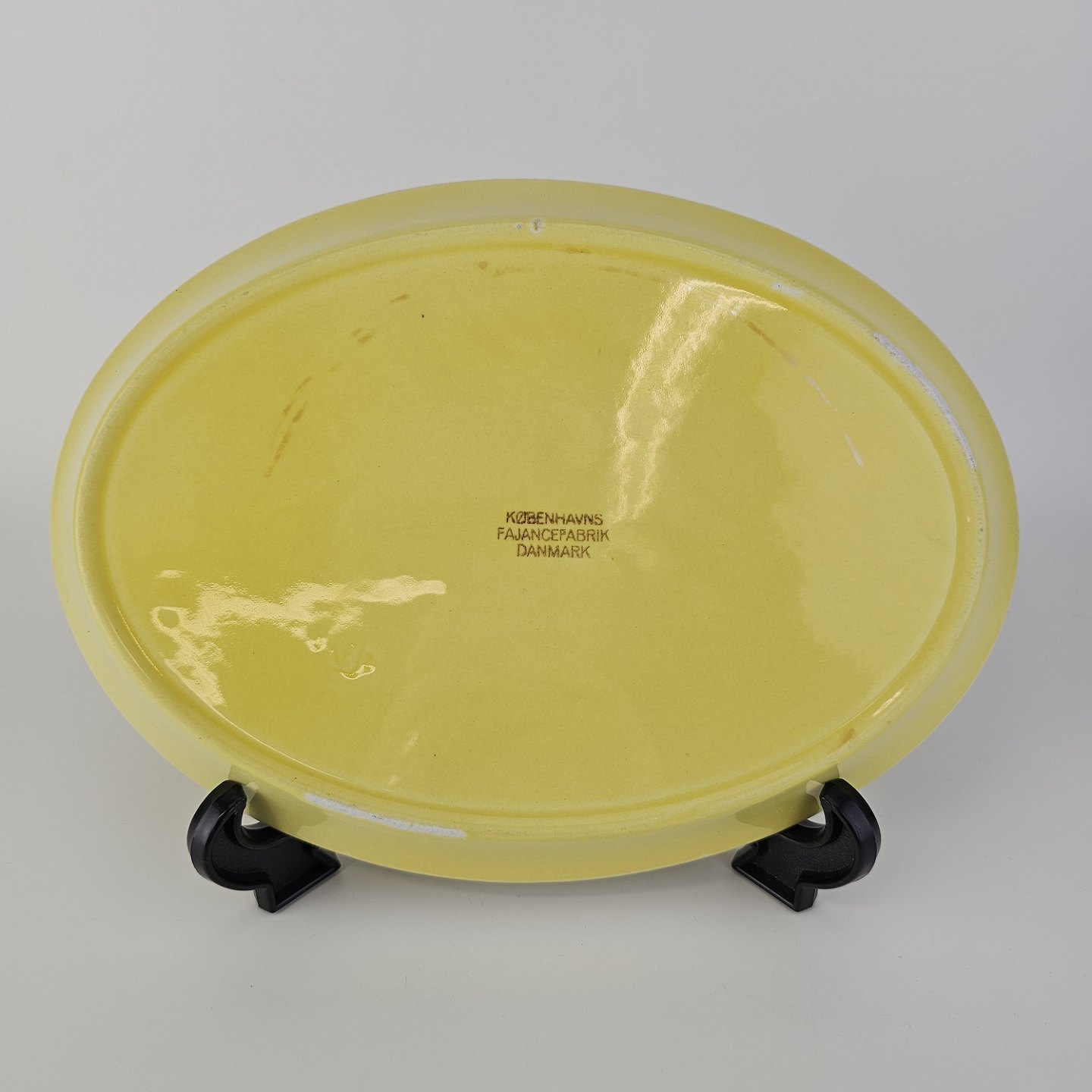 Beskrivelse: Ovalt fad i fajance fra stellet Gertrud fremstillet i perioden 1933-1939.
