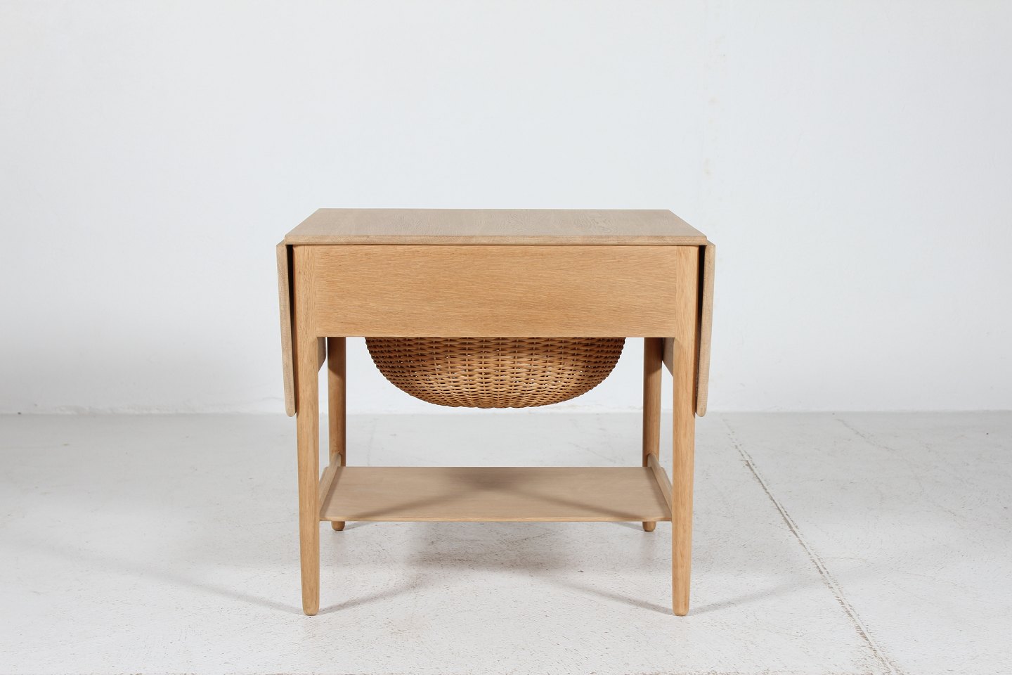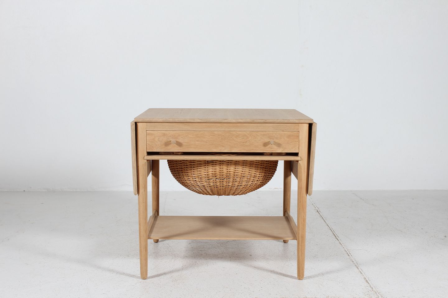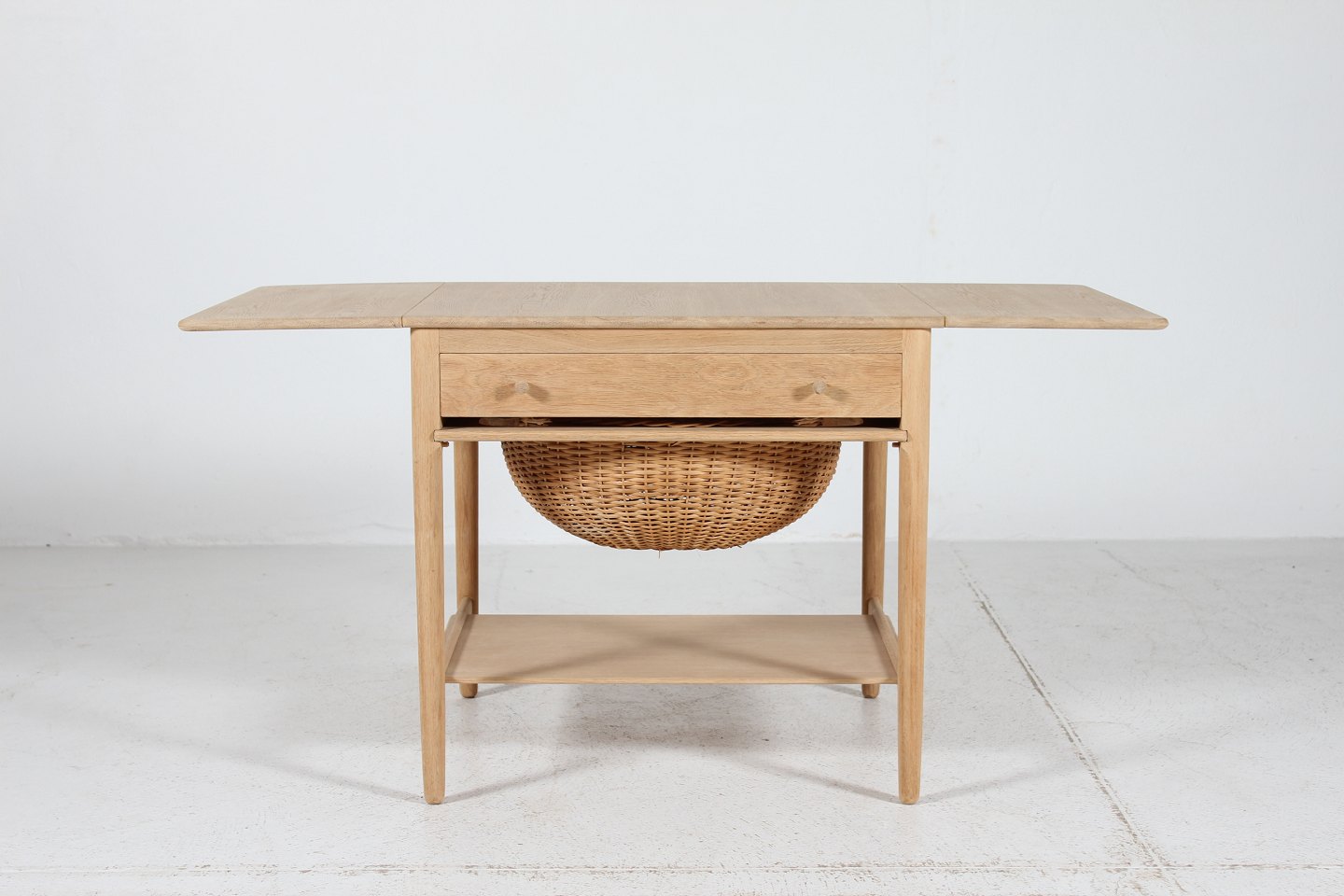 egetræ m/skuffe og kurv til garnnøgler
