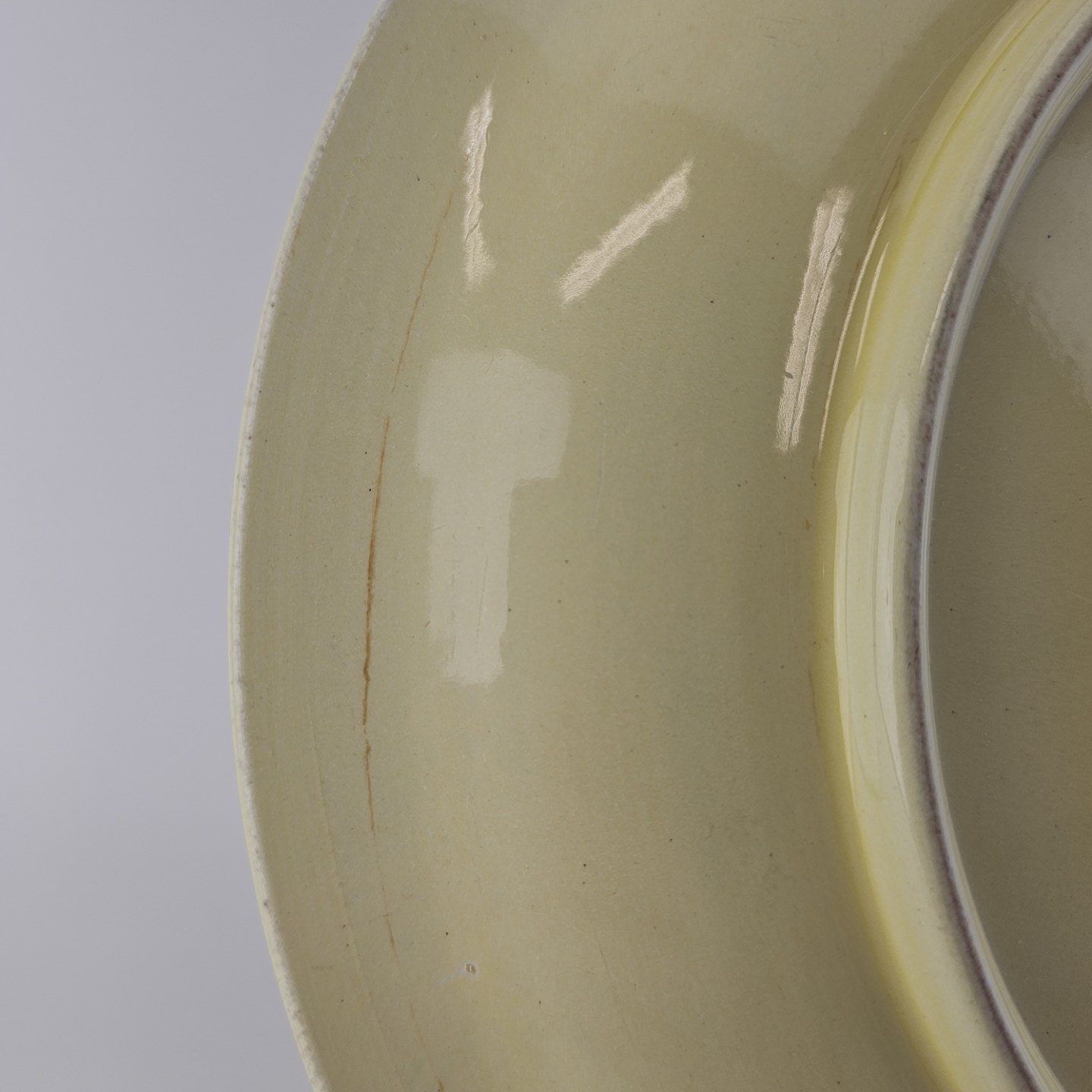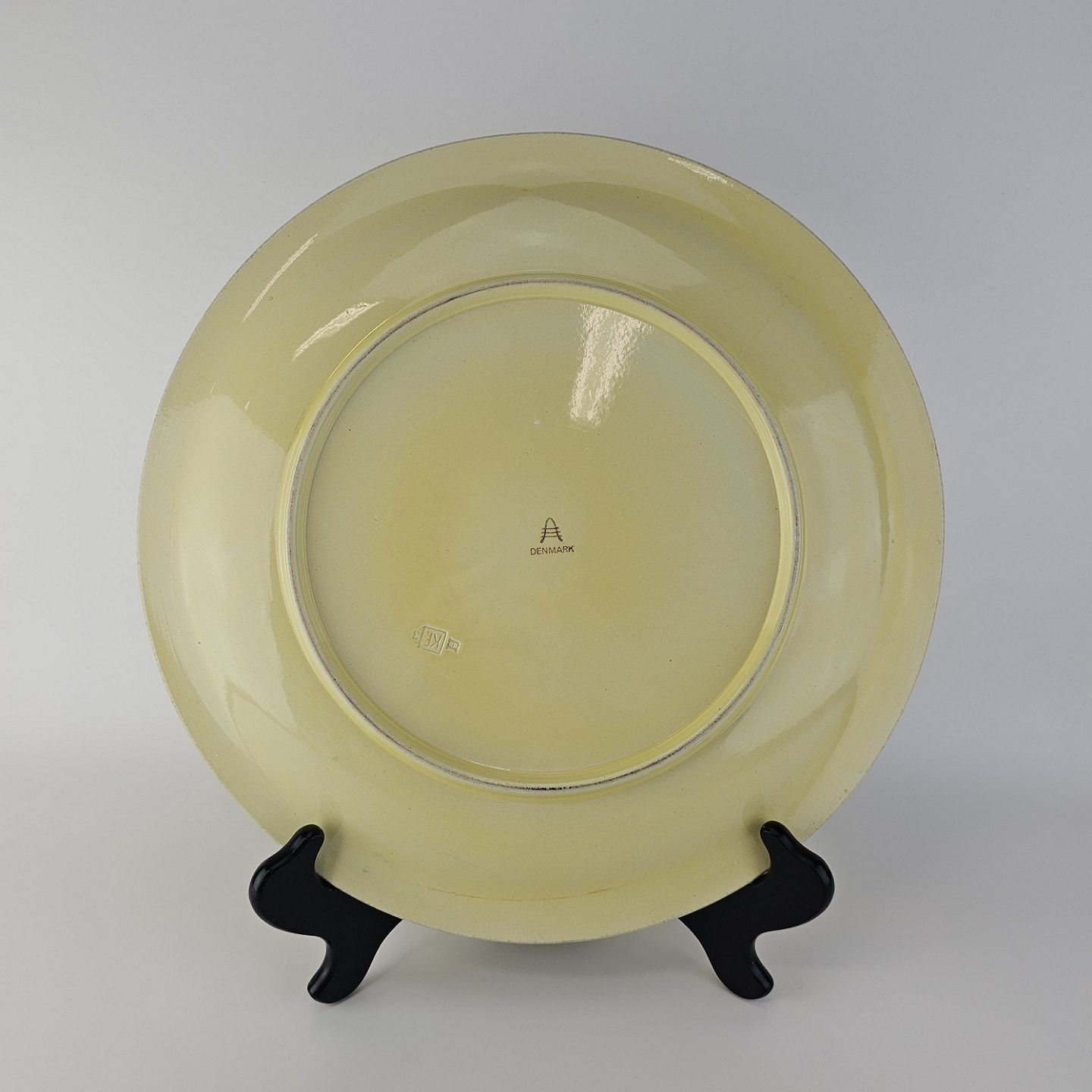 Beskrivelse: Rundt fladt fad i fajance fra stellet Gertrud fremstillet i perioden 1933-1939.