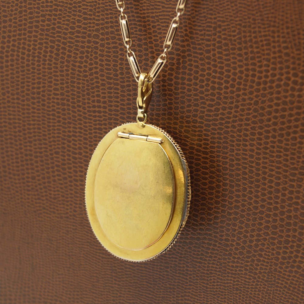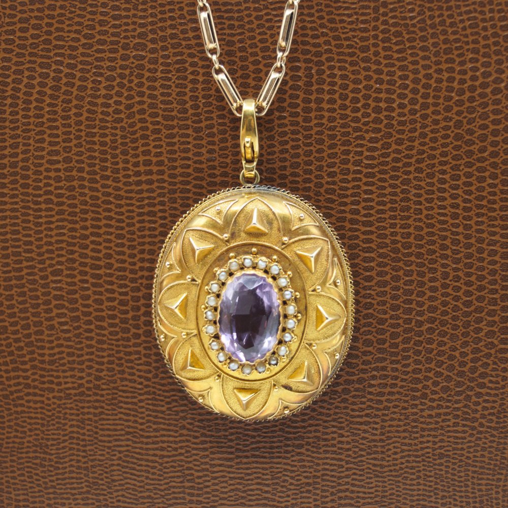 Medaljon i 14 kt. guld med ametyst og perler