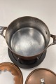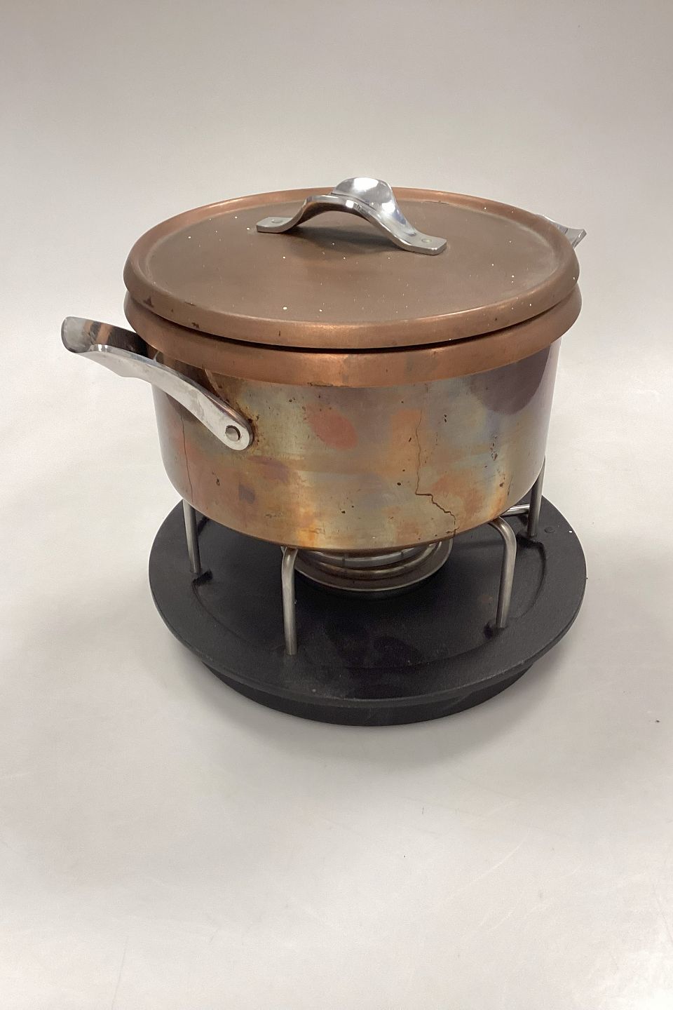 Beskrivelse: Georg Jensen fondue grydesæt i Kobber, bundfad i støbejern