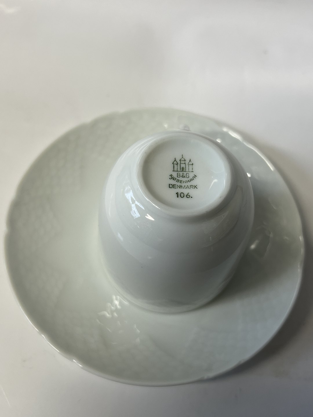 Beskrivelse: Elegance hvid lille espressokop med underkop. Bing og Grøndahl