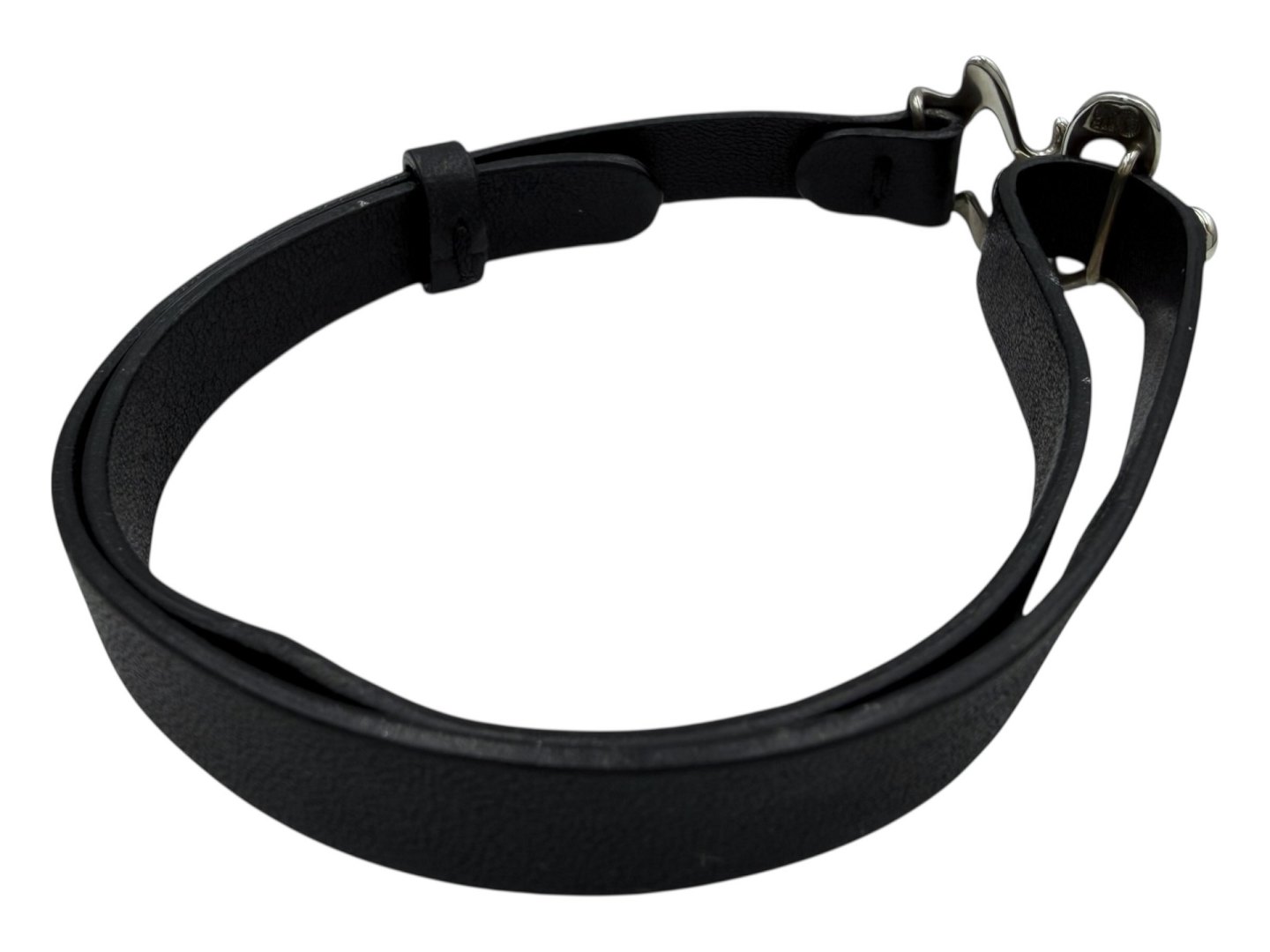 Beskrivelse: Georg Jensen sterling sølv og originalt sort læder, Splash armbånd.