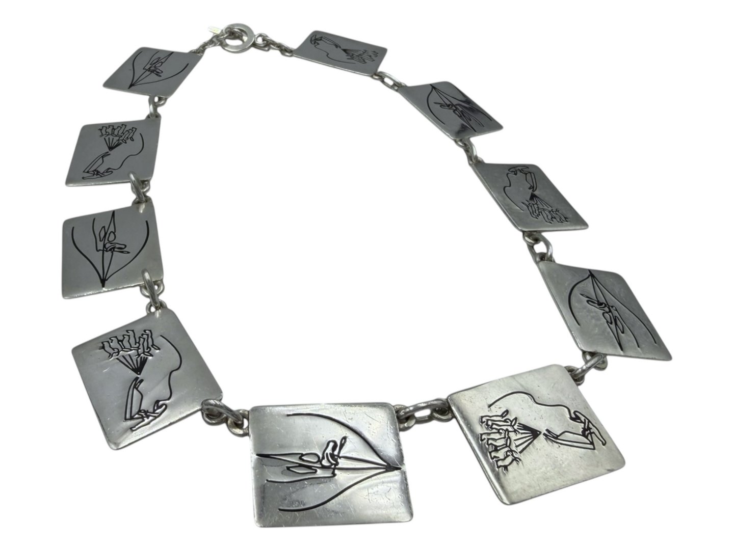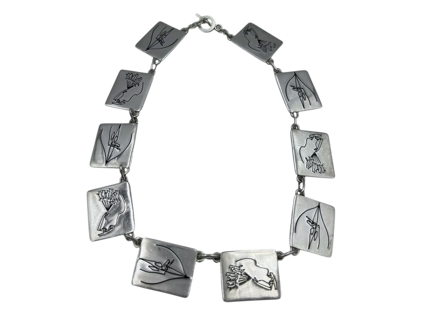 Beskrivelse: Tage Hansens Guldsmedie, kraftig sterlingsølv halskæde med motiver fra Grønland.