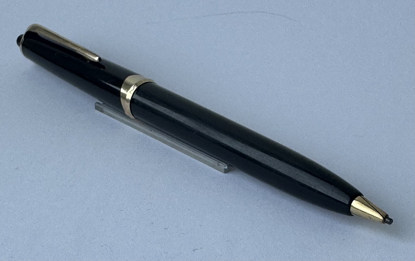 Beskrivelse: Elegant sort Montblanc Pix nr. 16 skrueblyant. Fremstår i perfekt og brugbar stand med blystift i str. 1,18 mm. Mål: 13,5 cm lang.
