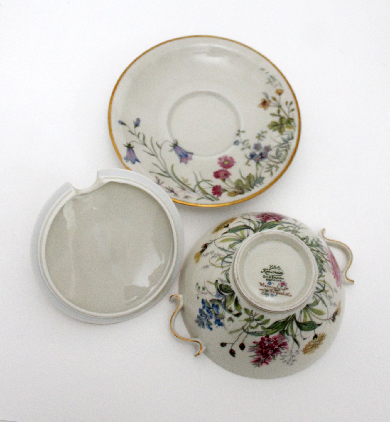 Beskrivelse: Krautheim, Selb Bavaria, Germany, Danmarks Flora cremet stel med guldkanter motiv Danmarks flora flere forskellige motiver.