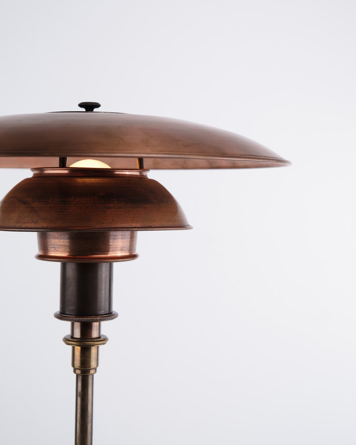 Poul Henningsen Bordlampe Model PH 3/2 med Kobber skærme, Fod i Bruneret Messing, Louis Poulsen