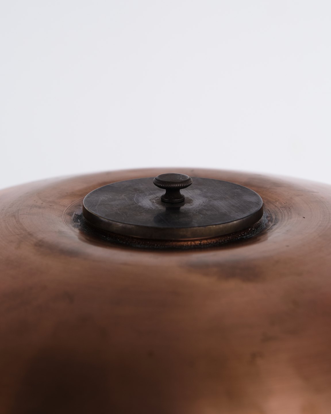 Beskrivelse: PH 3/2 bordlampe designet af Poul Henningsen og fremstillet af Louis Poulsen. Lampen er udført med skærme i kobber og fod i bruneret messing, hvilket giver et varmt og eksklusivt udtryk.