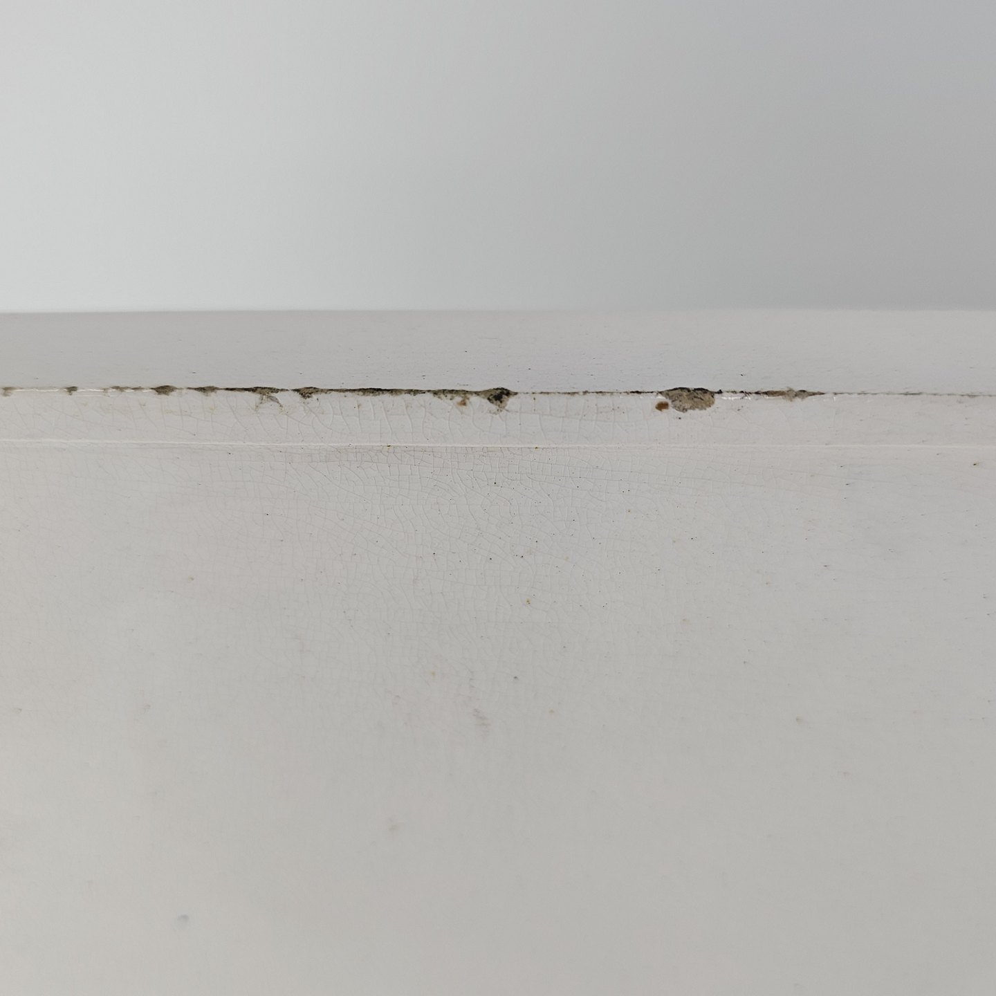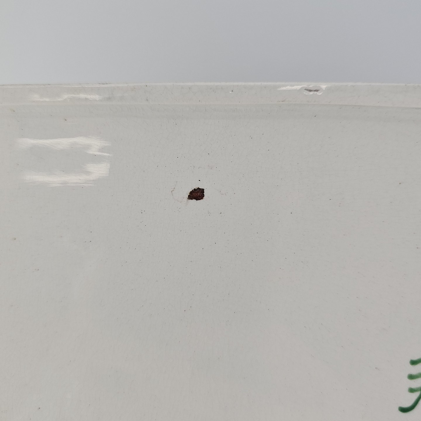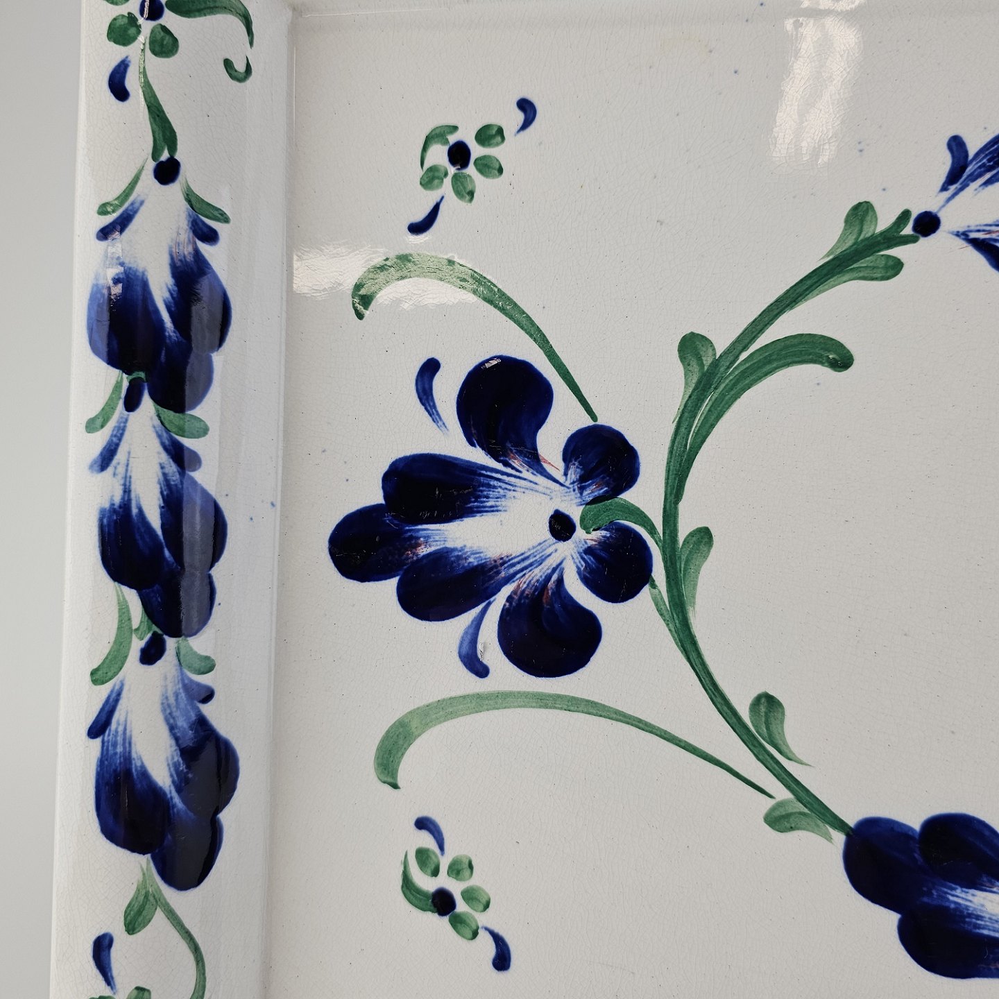 Beskrivelse: Rektangulært fad i hvid fajance fra stellet Blå Cenerarier