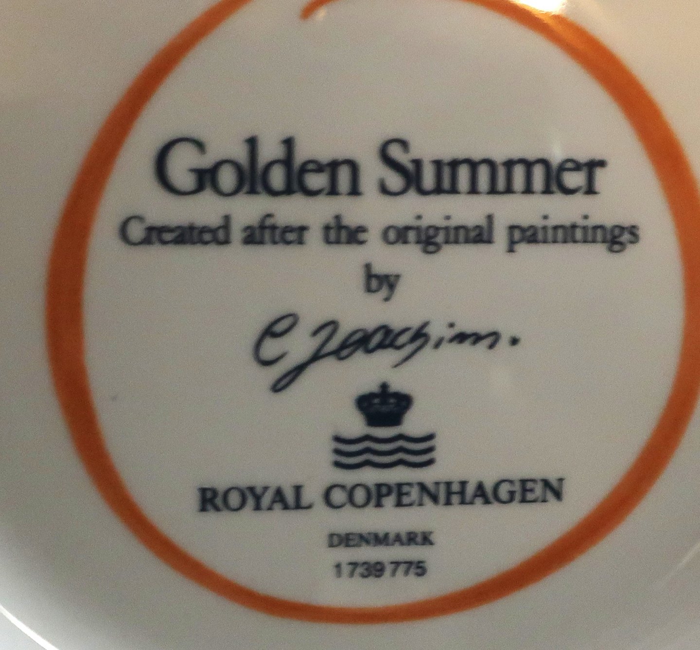 Beskrivelse: Royal Copenhagen. Golden Sommer. Skål med hank. Model 775. Diameter 18 cm.