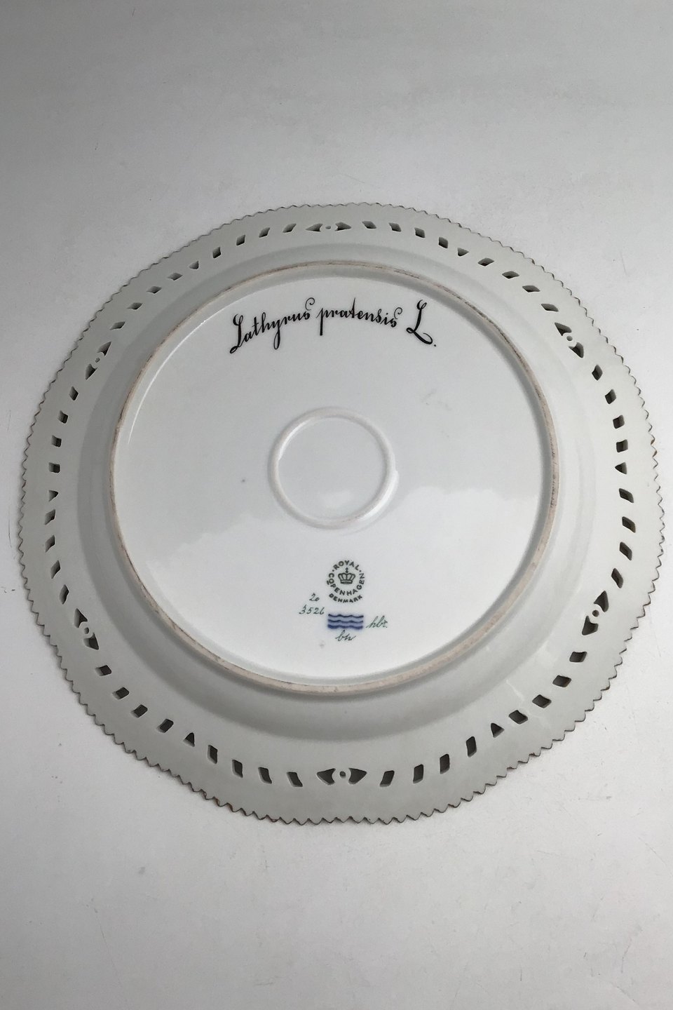 Beskrivelse: Royal Copenhagen Flora Danica Tallerken med gennembrudt kant No. 20/3526