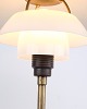 Beskrivelse: PH 4/3 bordlampe i bruneret messing med opalglas fra Louis Poulsen, 1930’erne. Mærket "Patented" og designet af Poul Henningsen.