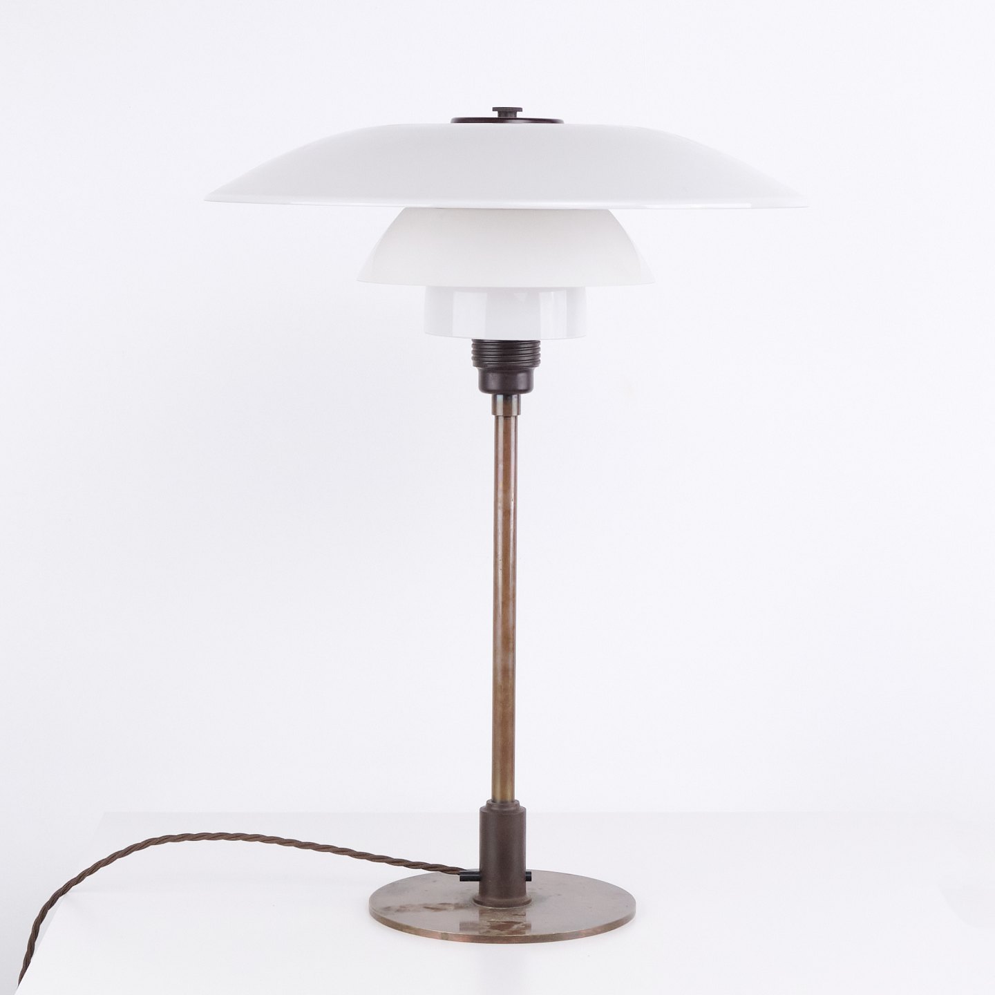 Poul Henningsen Bordlampe Model PH 4/3 i bruneret Messing for Louis Poulsen fra 1930erne