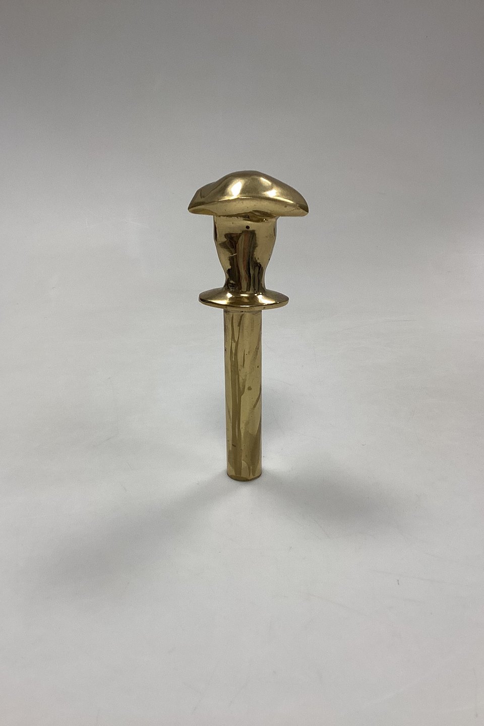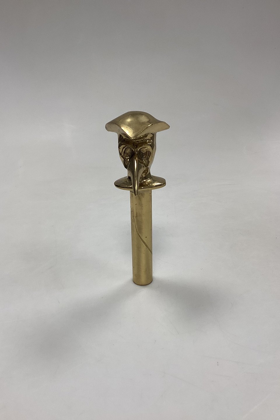 Beskrivelse: Messing Stokkehoved? udformet som Venetiansk Maske (Pestlægen)