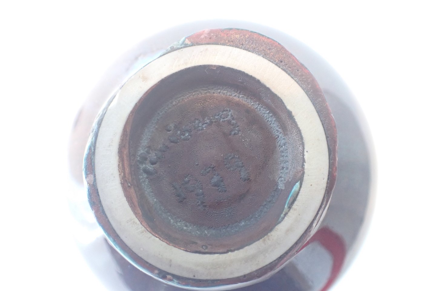 Beskrivelse: Berndt Friberg (1899 - 1981) - Lille, dråbeformet vase i stentøj med blank grøn/brun/blå spættet glasur. Gustavsberg. Stemblet Friberg 79. Højde: 11,7 cm. Bredde: ca. 7 cm. I fin stand men med oprindelig sleben bund.