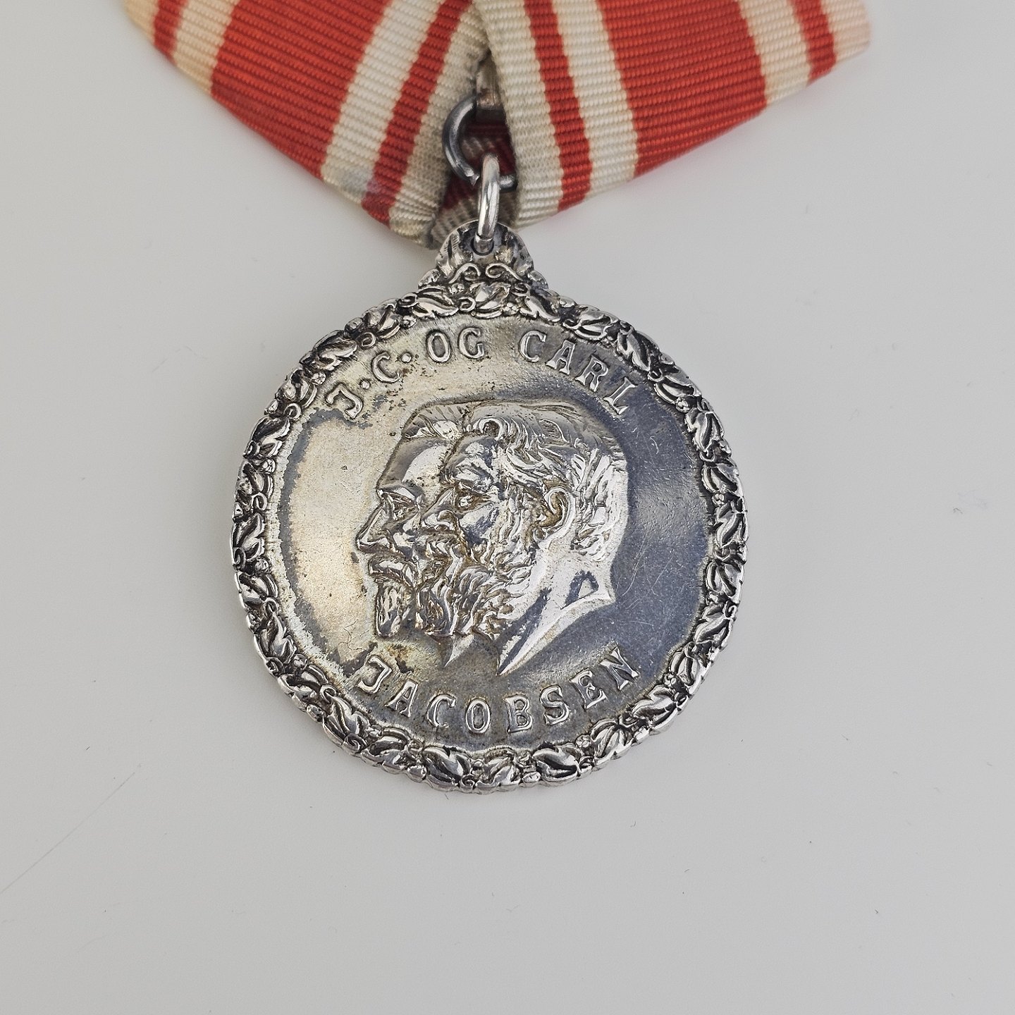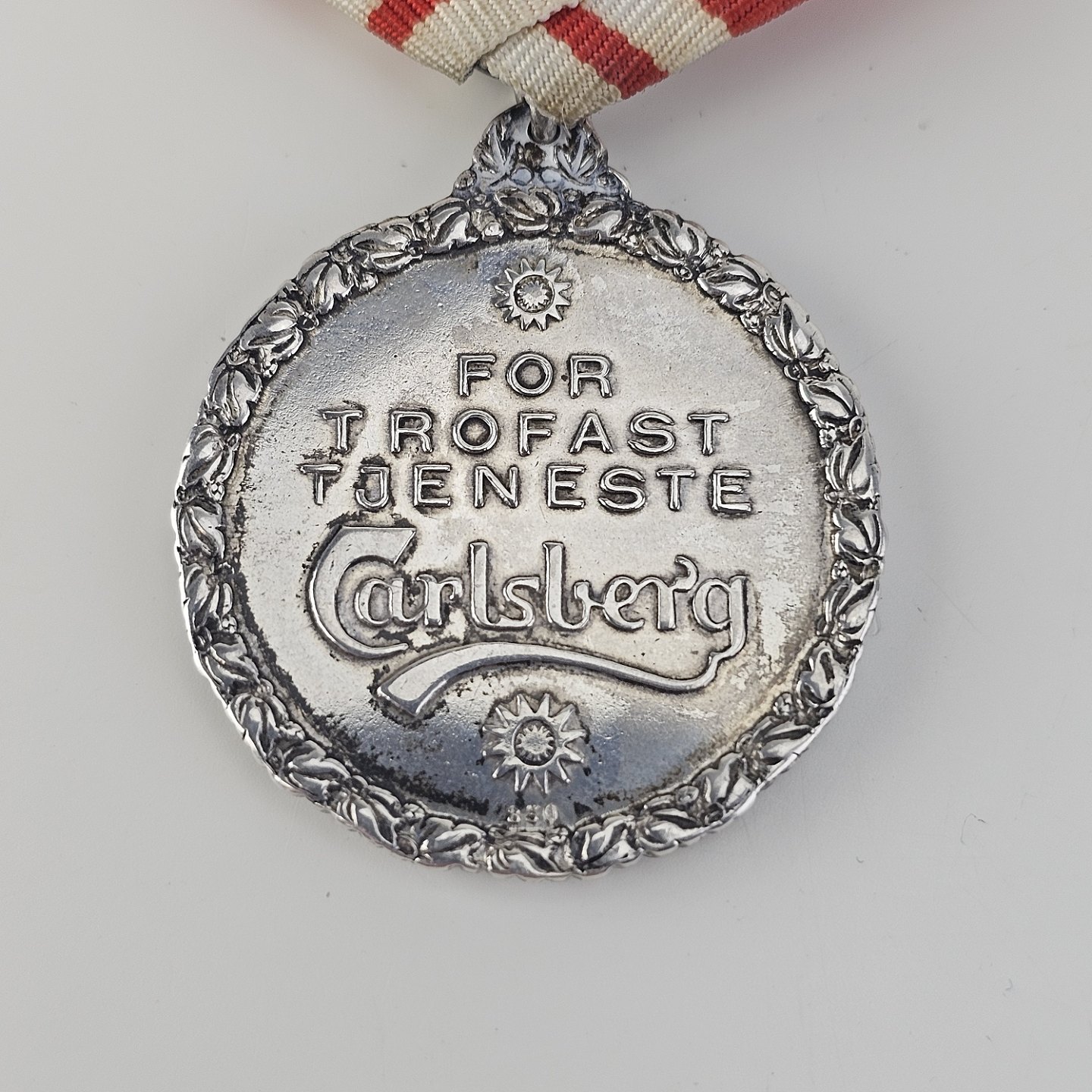 Beskrivelse: Medalje i sølv 999 med J.C. og Carl Jacobsen graveret på den ene side og "For trofast tjeneste" Carlsberg på den anden