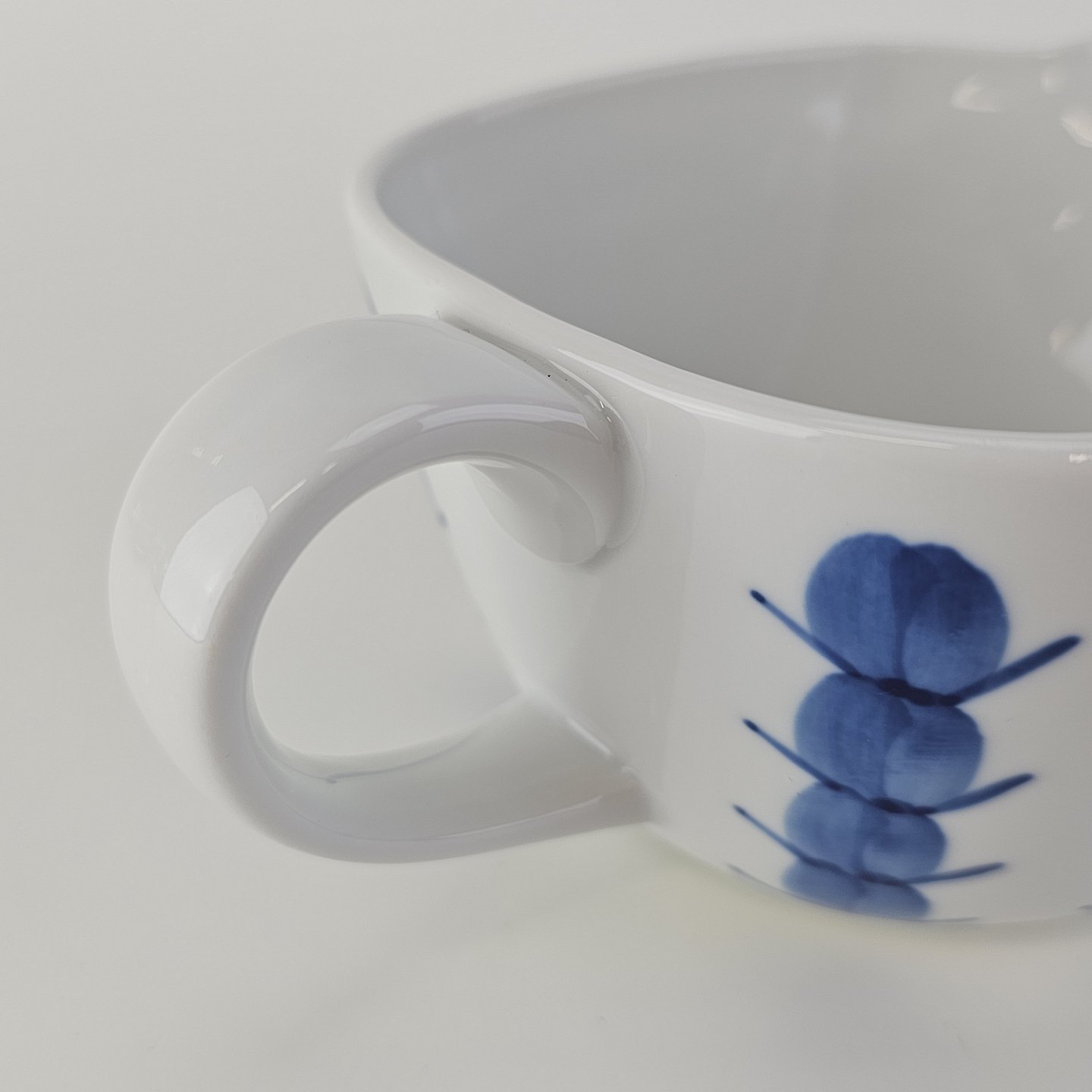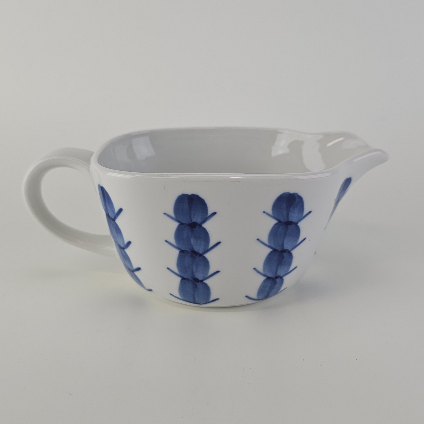 Beskrivelse: Sovsekande med hank i porcelæn fra Stellet Danild 30, også kaldet Blomsterknop
