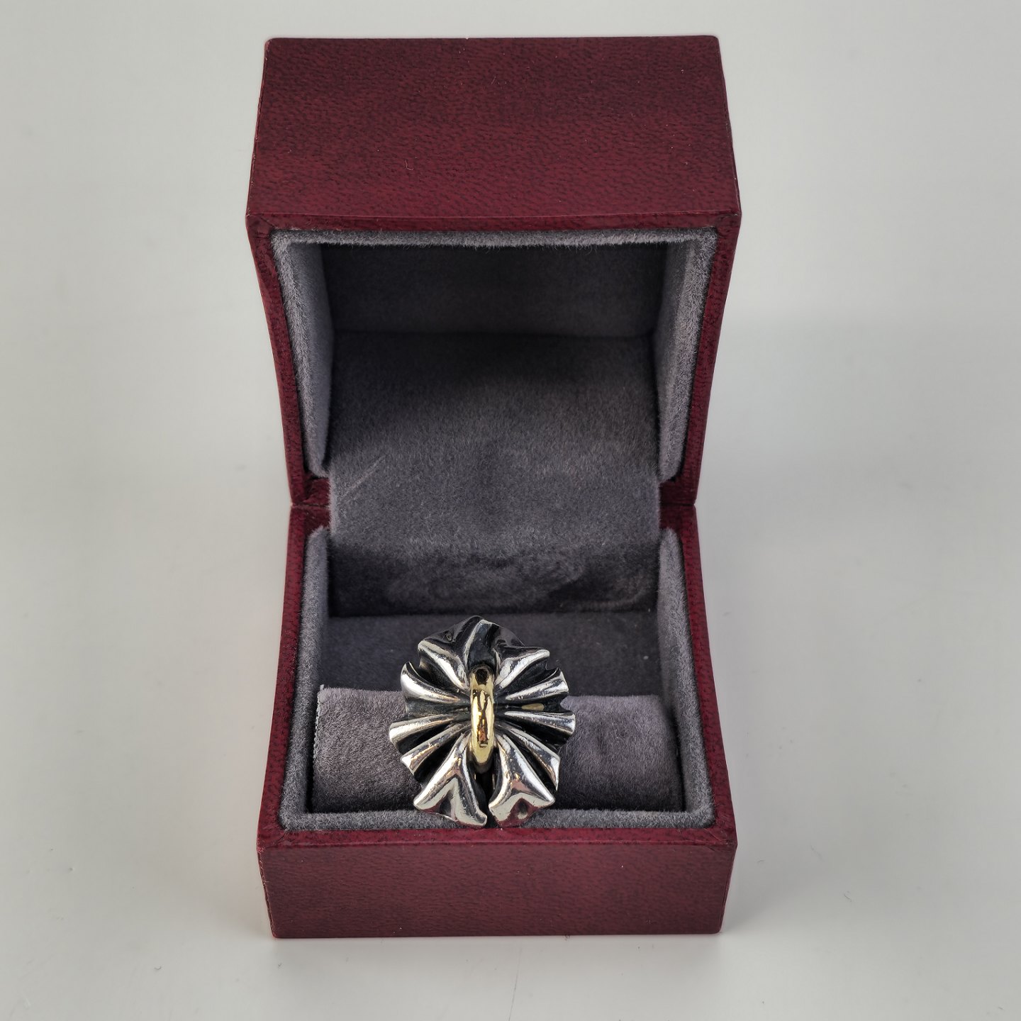 Beskrivelse: Ring i sterling sølv med dekoration i 18 karat guld