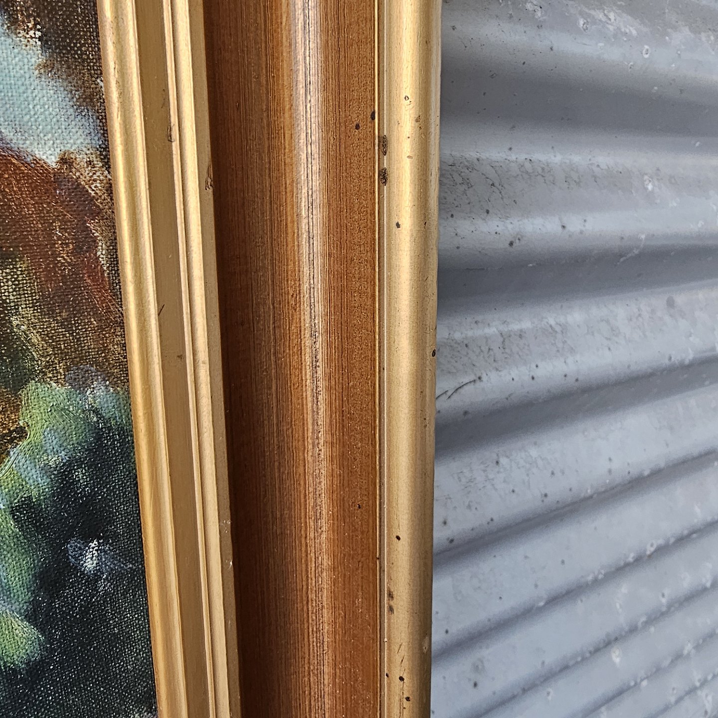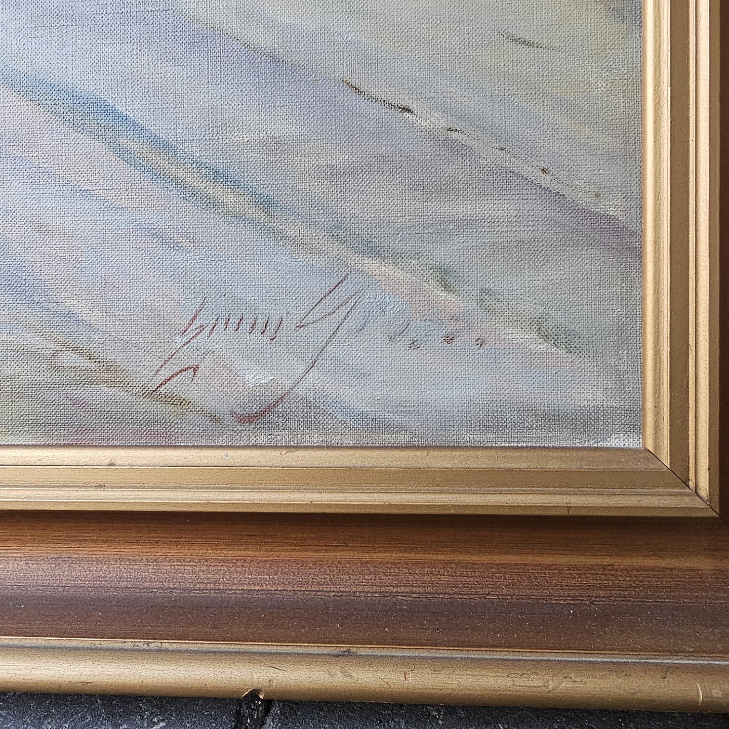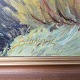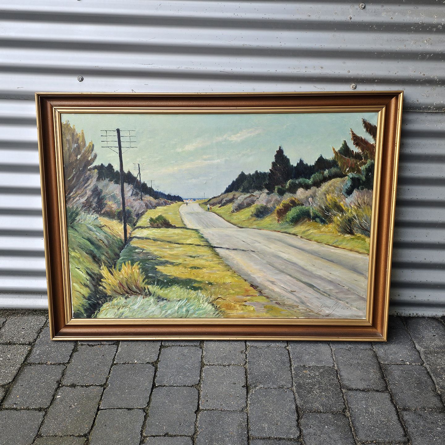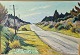Beskrivelse: Oliemaleri på lærred med titlen Blokhus. Monteret i guldramme med motiv af landevejen til Blokhus