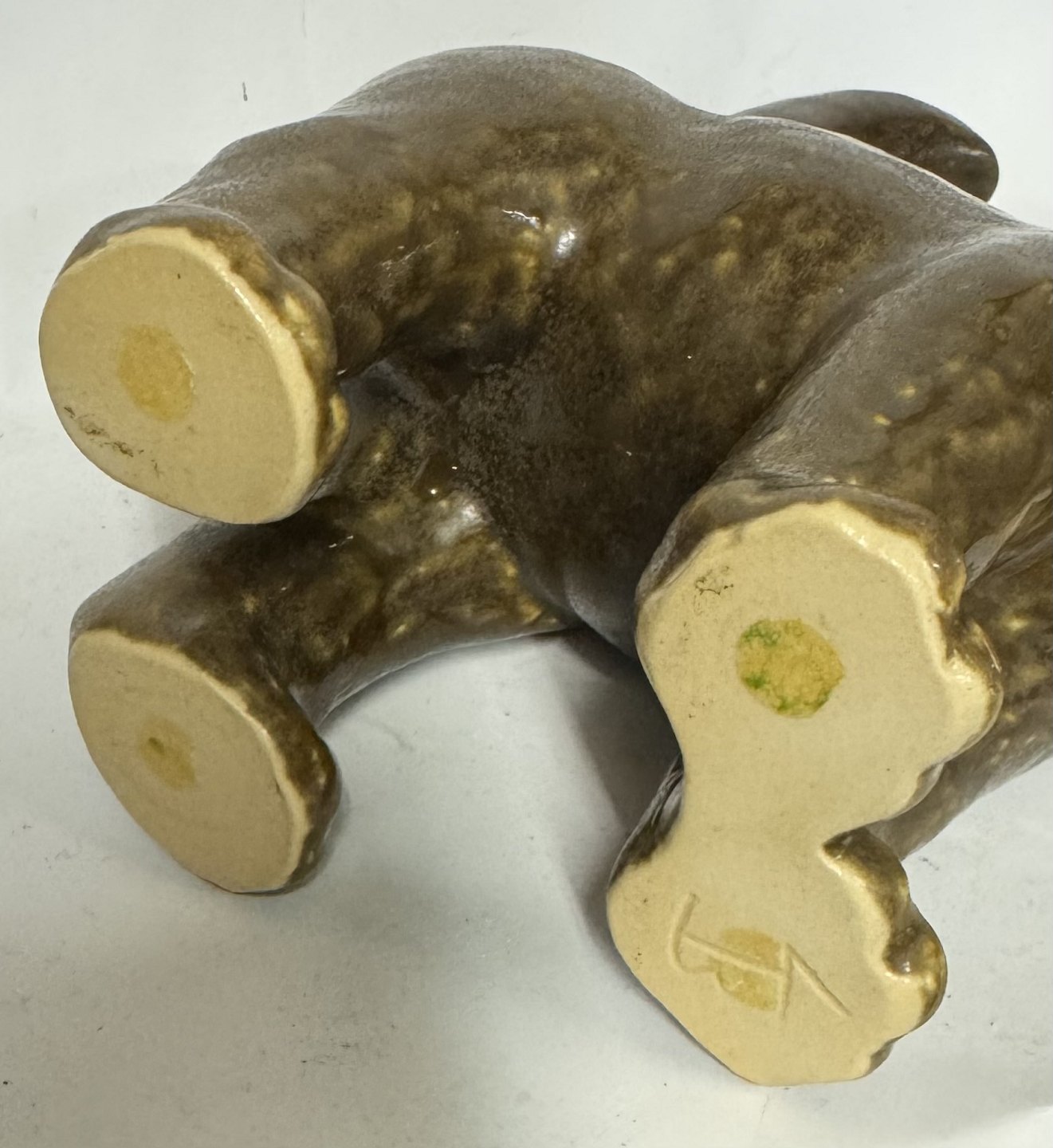 Beskrivelse: Figur i keramik udført af Knud Basse (1916-1991) på sit værksted i Vang på Bornholm. Brun glaseret. Fremstår i god stand. Signeret med KB. Mål: H. 22 cm L. 17 cm B. 7,5 cm