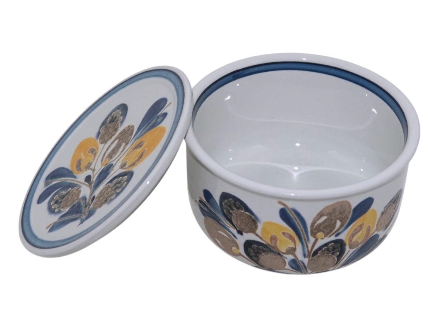 Beskrivelse: Royal Copenhagen Sienna, rund lågkrukke.