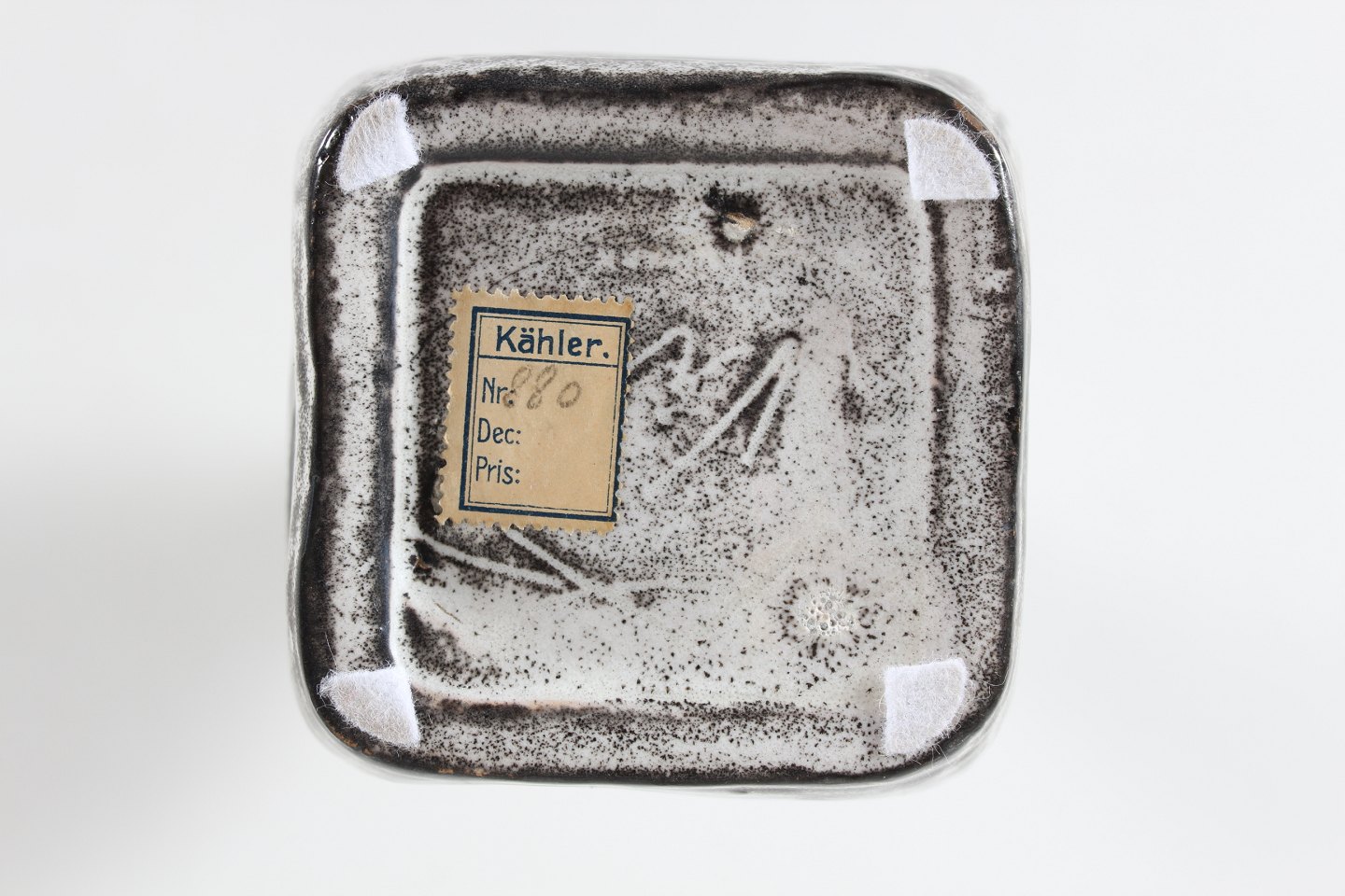 Dekoreret med lys askegrå glasur.