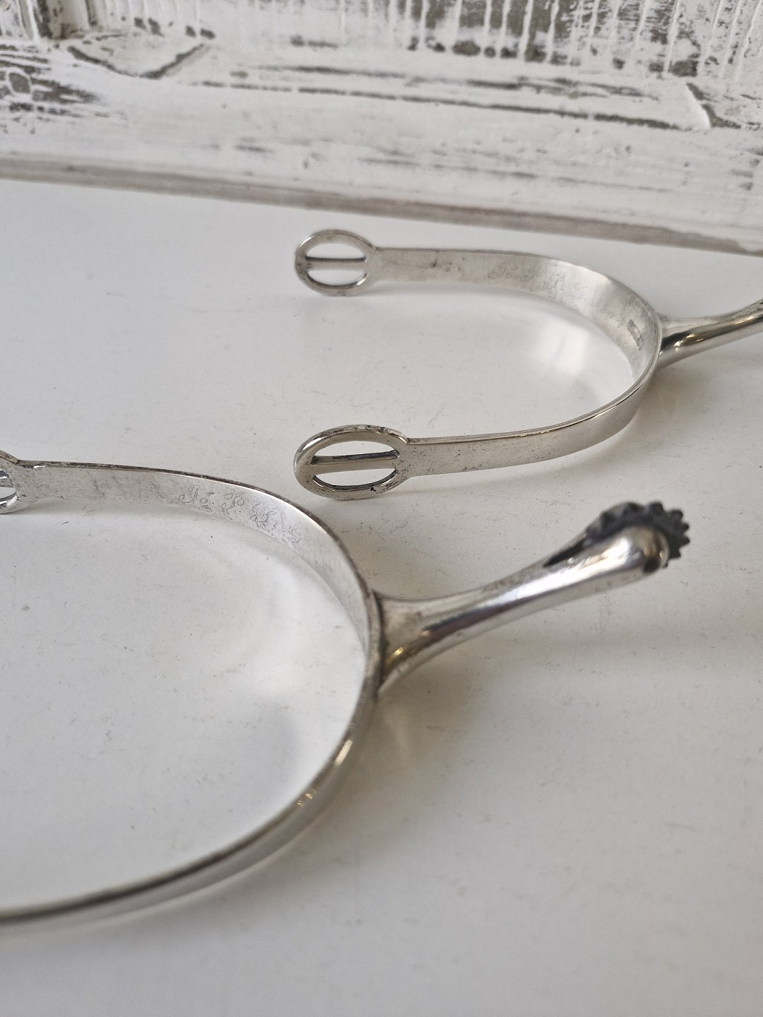 Beskrivelse: Par antikke ridesporer i sølv