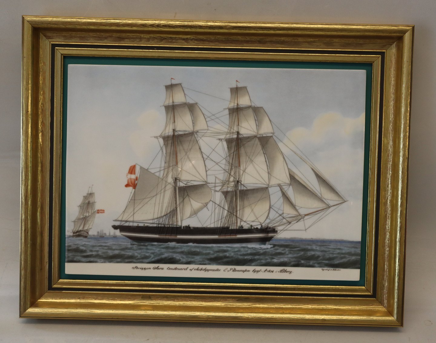 Description: Bing and Grondahl B&G Danish Marine Paintings on a porcelain plaque by Jakob Petersen. The Brig "Sara" 1836 30.5 x 28.5 cm 569/3500 Marked with the three Royal Towers of Copenhagen. Bing & Groendahl In mint and nice condition