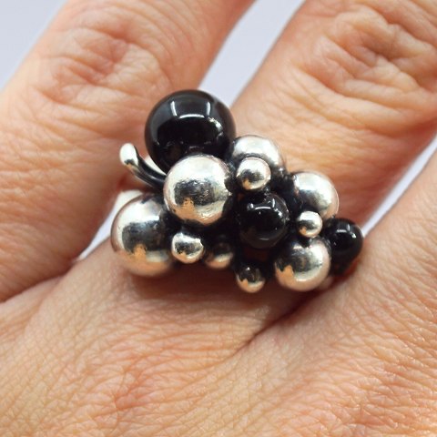 Georg Jensen; Par Moonlight Grapes øreringe i sterlingsølv med onyx