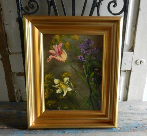 "Annas klare toner" Stort flot maleri i sølv svæveramme.
